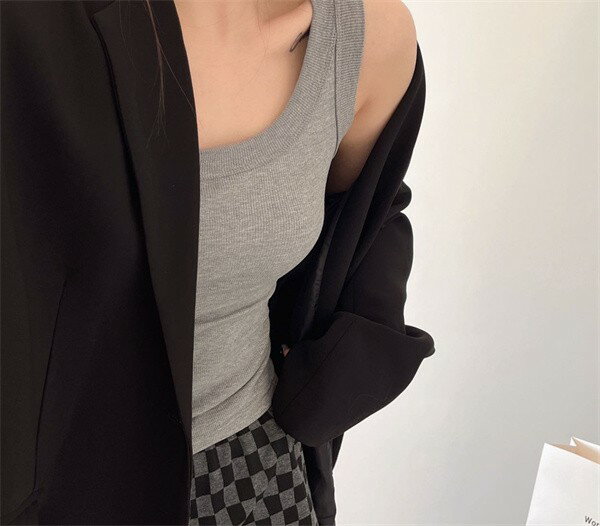 春夏新作 レディース キャミソール 無地 袖なし ベストトップス 薄手 脇肉カバー タンクトップ 黒 白 灰色 カジュアル インナー dh033x6x6c6