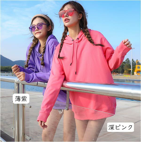 厚手 秋冬 パーカー レディース カラフル 無地 大きいサイズ プルオーバーパーカー スウェットパーカー フーディー スエット パーカ フード付き ゆったり 秋 冬 白 黒 赤 グレー 緑 青 ピンク 黄色 紫 卒業旅行 姉妹 家族 撮影 M 2L 3L 4L 5L 6L dg246t2t2c6