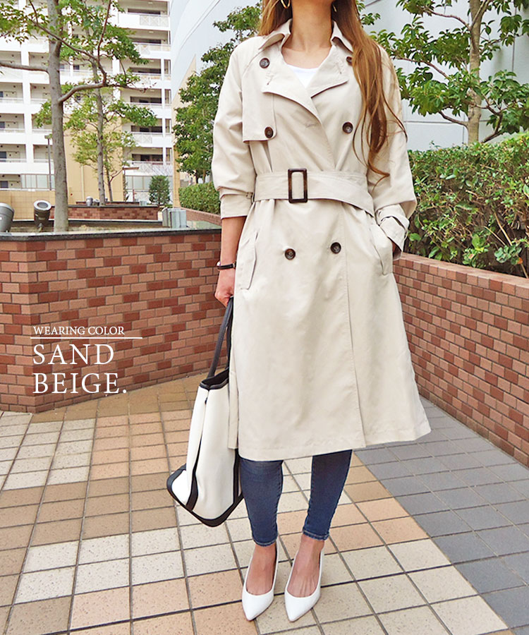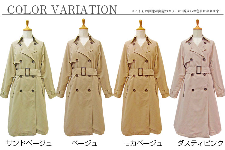 【在庫処分★4980円→2999円】トレンチコート レディース ロングコート カジュアル ダブル ピーチ素材 薄手 ロング丈 春 105丈 大人 ロング コート 上品 卒業式 入学式 定番 通勤 通学 シンプル ベージュ スプリングコート 羽織り 長袖 裏地付 M L 30代 40代 50代 YA059