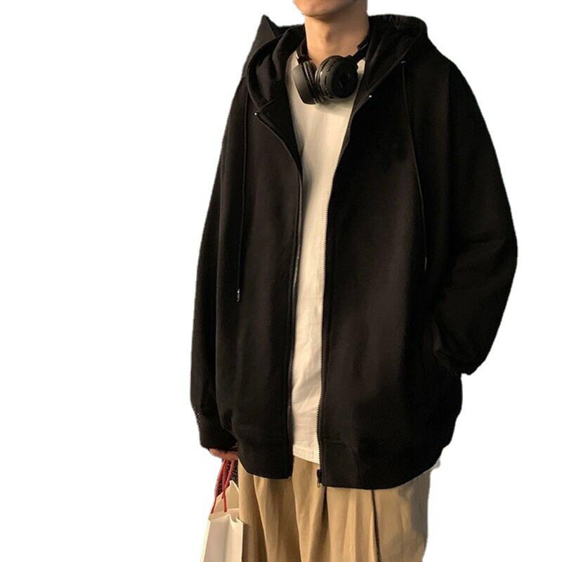 パーカー メンズ パーカ スウェット スウェットパーカー ジップアップパーカー 送料無料 ジップパーカー 秋服 インレイパーカー 薄手 2タイプ選べる 無地 黒 グレー 韓国