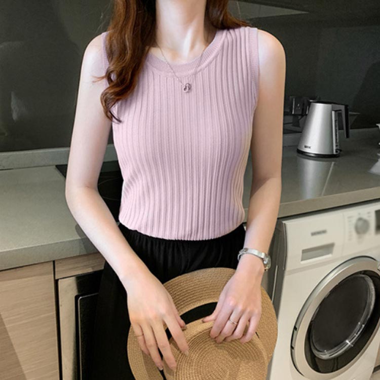 タンクトップ ノースリーブ レディース シンプル サマーニット リブニット ニット tシャツノースリーブ カットソー Uネック 袖なし 送料無料 きれいめ カジュアル 送料無料 セクシー かわいい 通勤