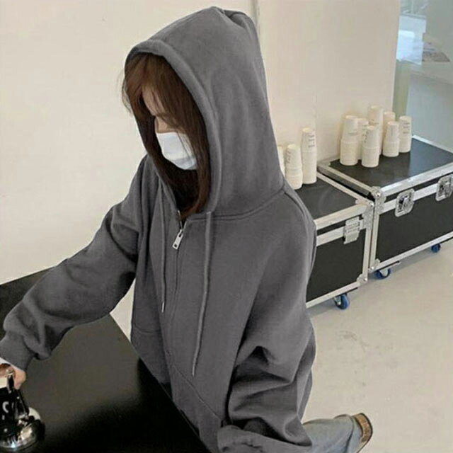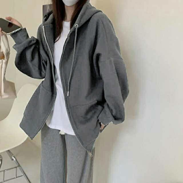 ジッパー ジップパーカー 長袖 レディース メンズ 春秋 パーカー フード付き ジップアップパーカー スウェット 薄手 アウター トップス 30代 カジュアル 無地 ビッグシルエット 大きいサイズ 10代 20代 ゆったり