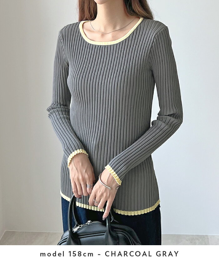 1000円クーポンで2290円★チクチクしない 着痩せ見え 体型カバー トップス セーター 配色 ニット レディース 長袖 春 夏 カジュアル 配色 シンプル 防寒 大人可愛い お洒落 韓国ファッション YP/ パイピングリブニット