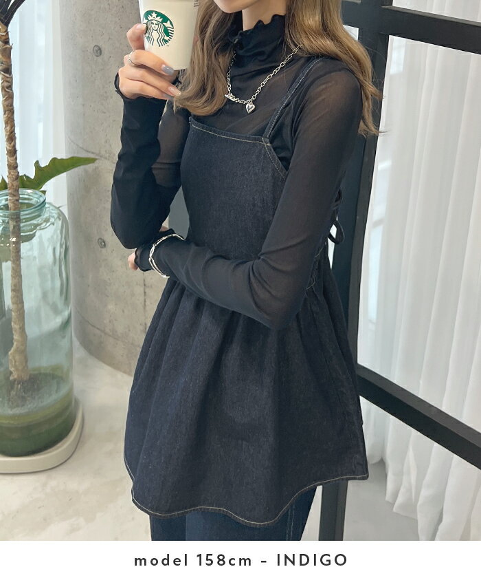 最大30%OFFクーポン★ 売切りSALE今だけ【5290円→1990円】 チュール フリル カラー レディース 付け襟 トレンド ショルダー ベアトップス ビスチェ デニム シアー 透け感 ギャザー レイヤード アレンジ 春 夏 秋 冬 YP/ ウエストスリットデニムキャミビスチェ