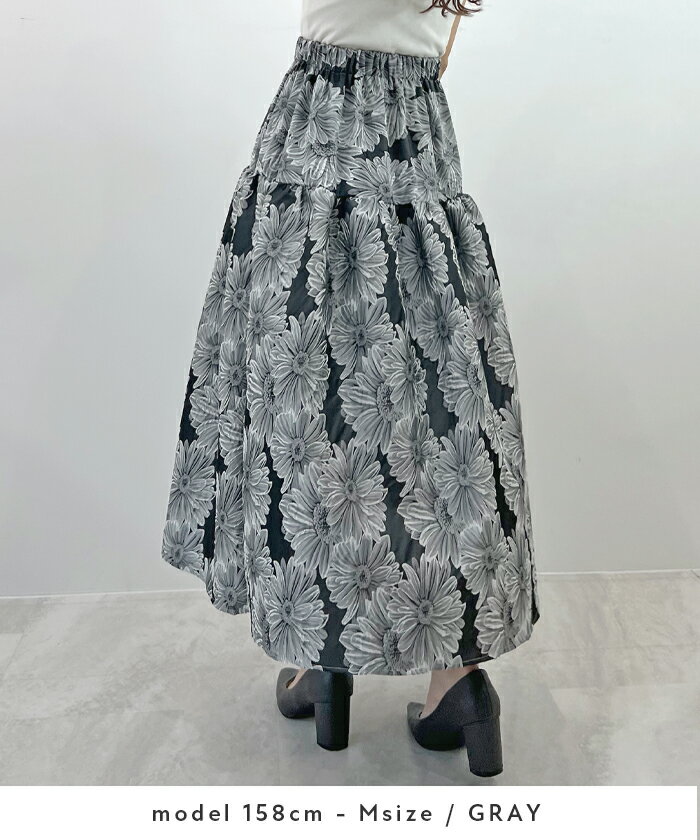 最大30%OFFクーポン★期間限定SALE!スカート 花柄 大人可愛い ジャガード フラワー ティアードスカート ロングスカート ミモレ丈 韓国ファッション オフィスカジュアル 2025年春新作/ ジャガードフラワーティアードフレアスカート
