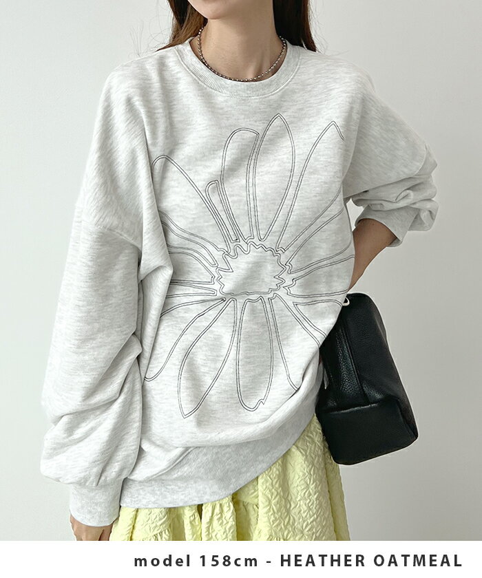 最大30%OFFクーポン★トップス スウェット フラワー 花柄 刺繍 オーバーサイス ゆったり プルオーバー リラックス 抜け感 上品 韓国ファッション オフィスカジュアル 2025年春新作 / BIGフラワー刺繍オーバーサイズスウェット