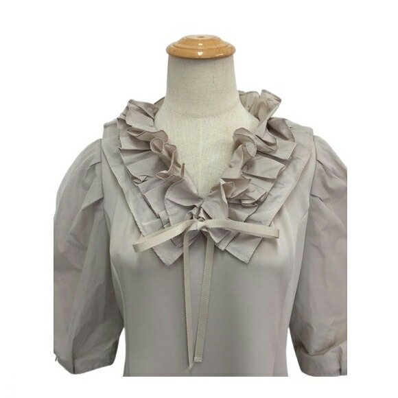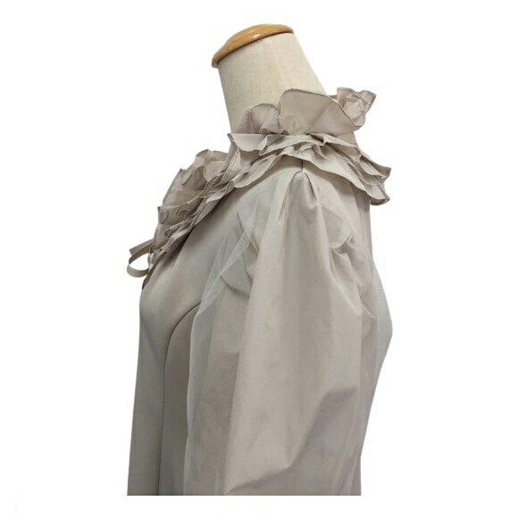 スーパービューティー チュニック フリル衿 二重袖 2412002 ベージュ 2024年春夏 大人可愛い オーラボー ミセス レディース キレイメ アパレル 女性 M L LL 30代 40代 50代 60代 若見え 洋服