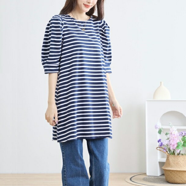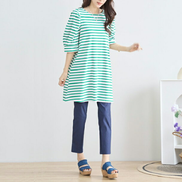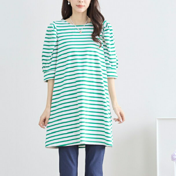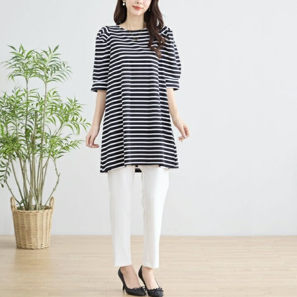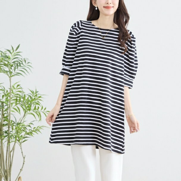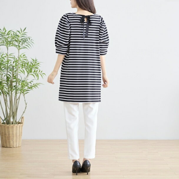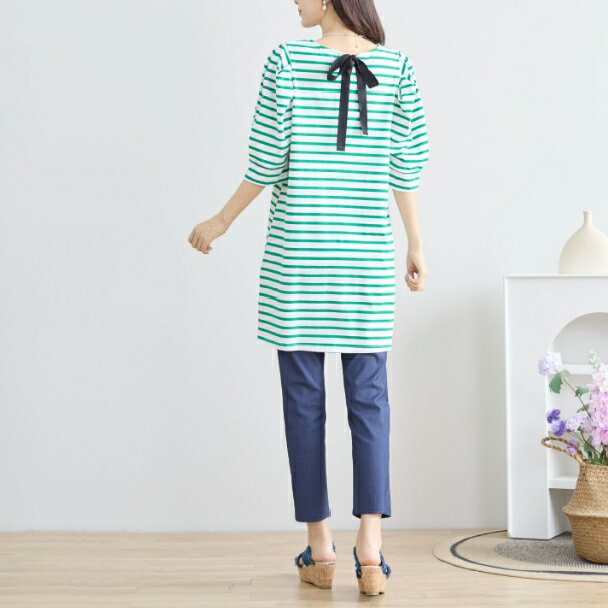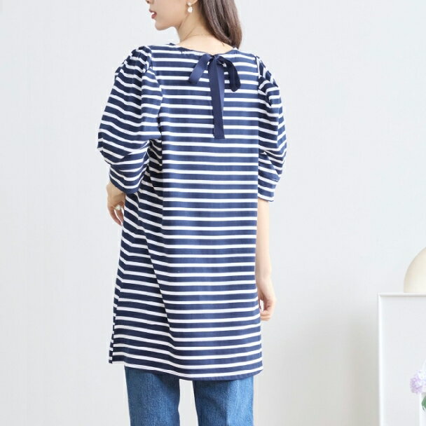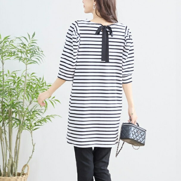 チュニック バックリボン付き ボーダー カットソー ロングTシャツ N83-073 TRUBE M~L大人可愛い ミセス fmsd キレイメ 普段着 おしゃれ着 デイリーファッション 大人スタイル 婦人服 可愛い服 30代 40代 50代 60代 洋服 レディース アパレル 女性
