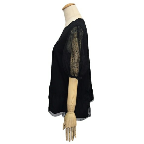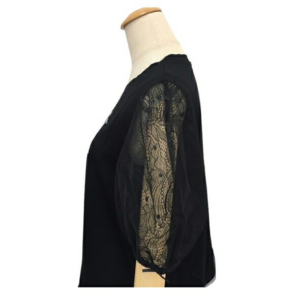 【エコバックプレゼント中!】スーパービューティー チュニック カットソー トルソー柄 袖レース 2512013 ブラック 2025年春夏 オーラボー 大人かわいい服 大人スタイル キレイメ Super Beauty レディース アパレル 女性 M L LL 30代 40代 50代 60代