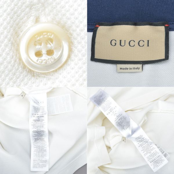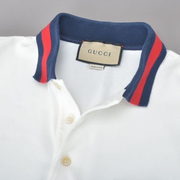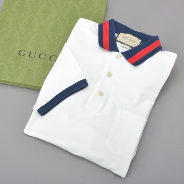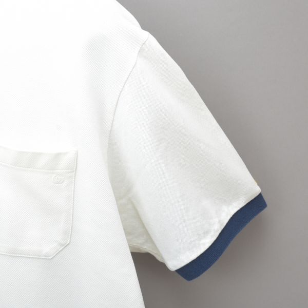 未使用同様 GUCCI グッチ 半袖 ポロシャツ XL ウェブストライプ 襟 コットン アイボリー 白 紺 701735 トップス メンズ 服/a.a/