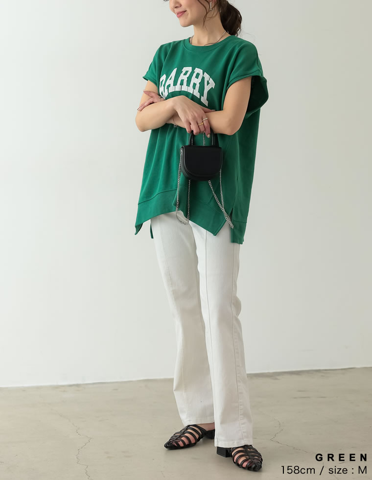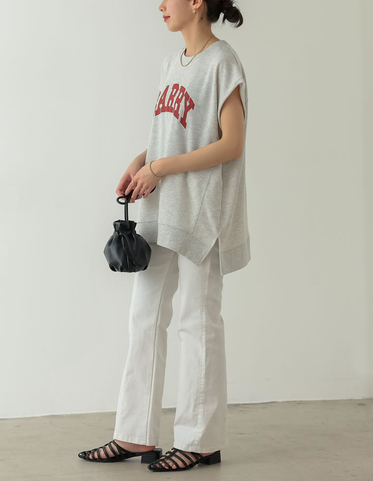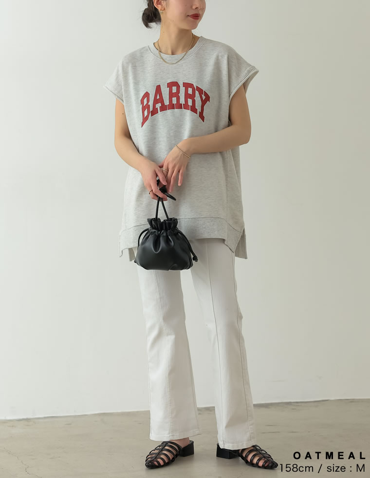 【OUTLET】M/Lサイズ 裏毛カレッジロゴノースリーブスウェットプルオーバー レディース 春 夏 / トップス スウェット ノースリーブ カレッジロゴ オーバーサイズ コットンブレンド 綿混