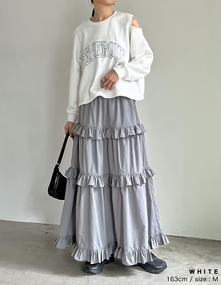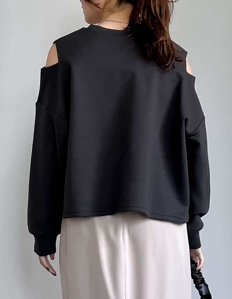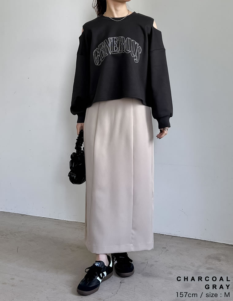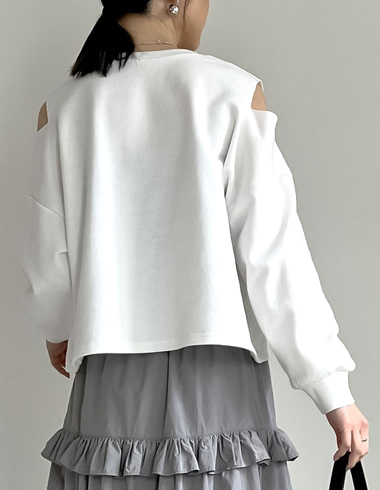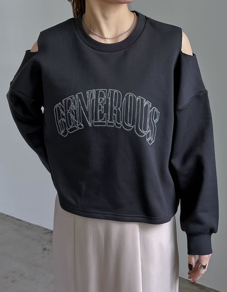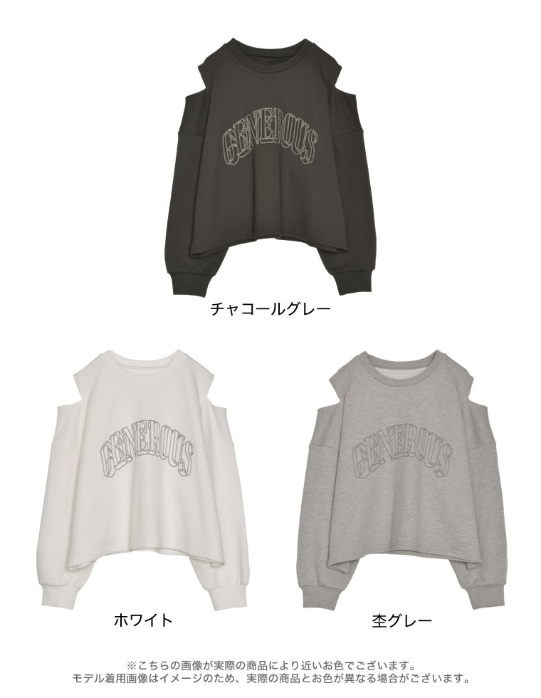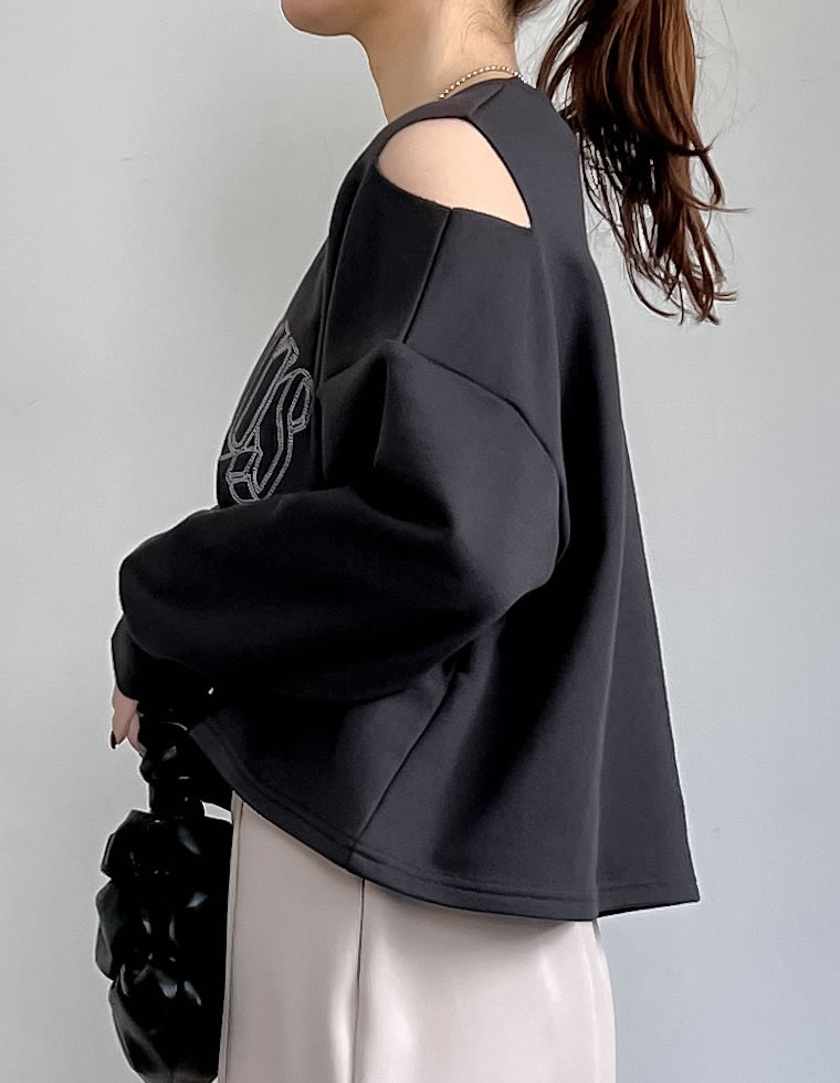 【TIME SALE】M/Lサイズ 裏毛刺繍ロゴ肩スリットあきショート丈トップス レディース 春 夏 / トップス スウェット トレーナー トップス プルオーバー 裏毛 長袖 ロゴスウェット ロゴ
