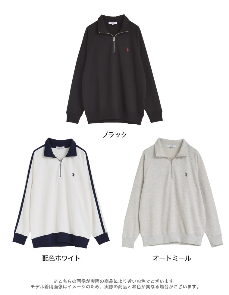 【全品2BUY20%OFFクーポン有】《10月14日販売》M/L/XLサイズ [U.S. POLO ASSN.][別注]ワンポイント刺繍ハーフジップスウェットプルオーバー レディース 秋 冬 リエディ / トップス スウェット ハーフジップ 長袖 裏毛 パーカー U.S. POLO ASSN. オーバーサイズ