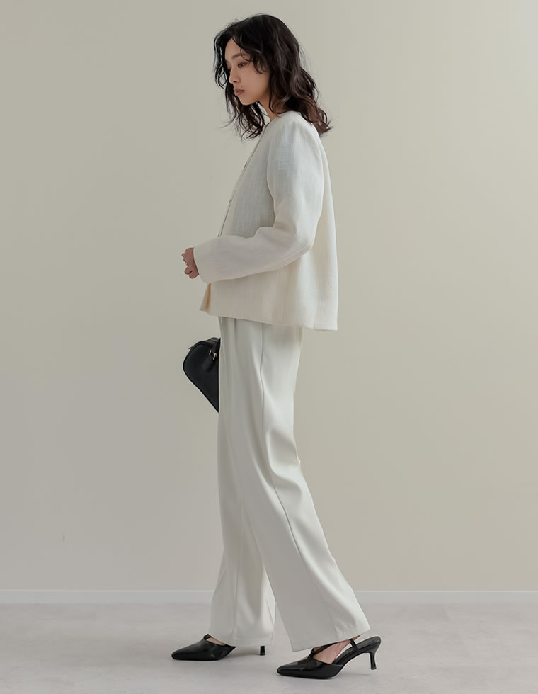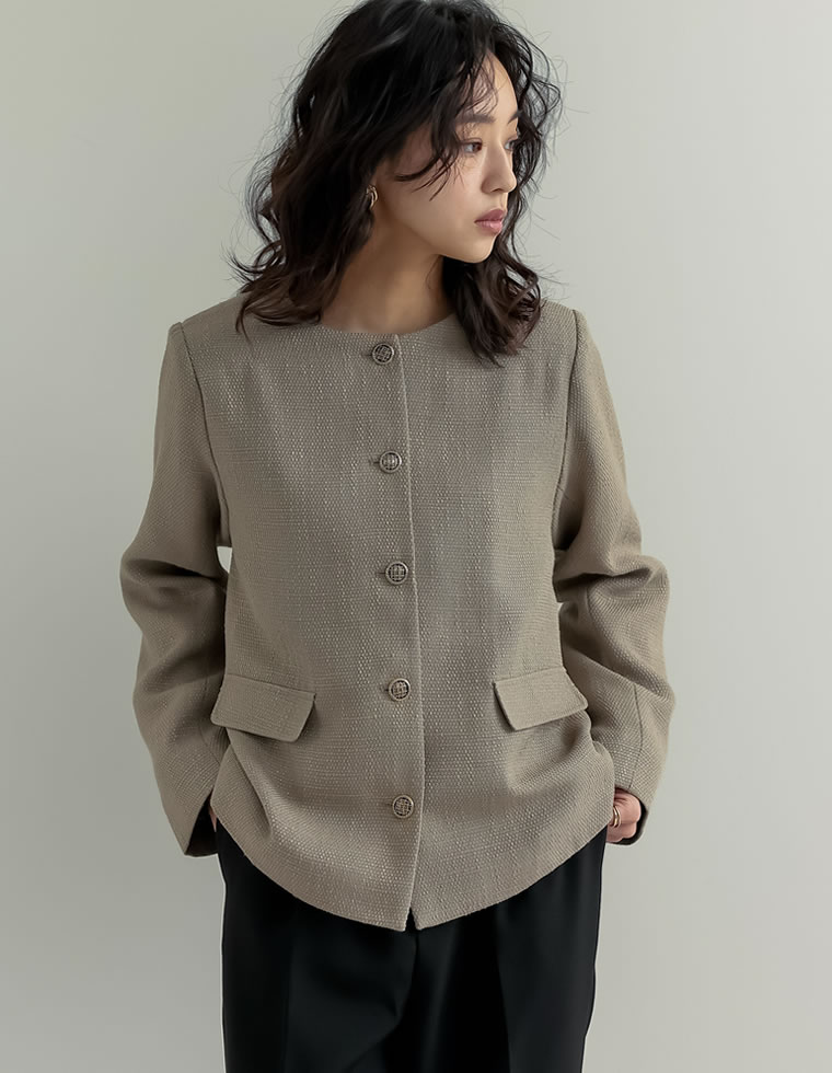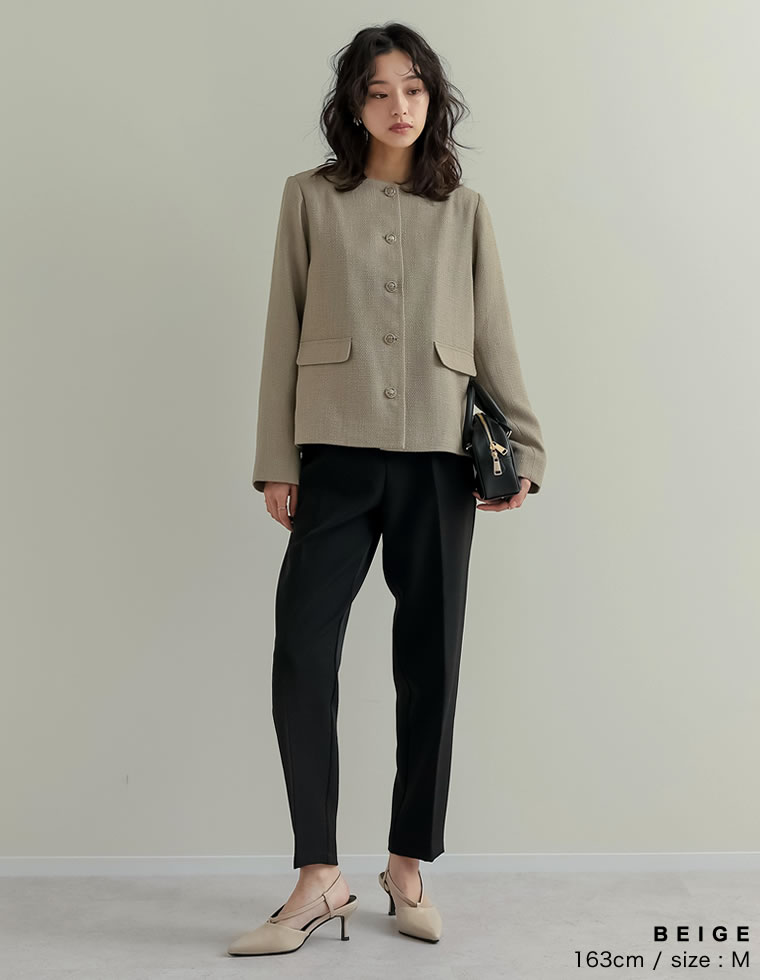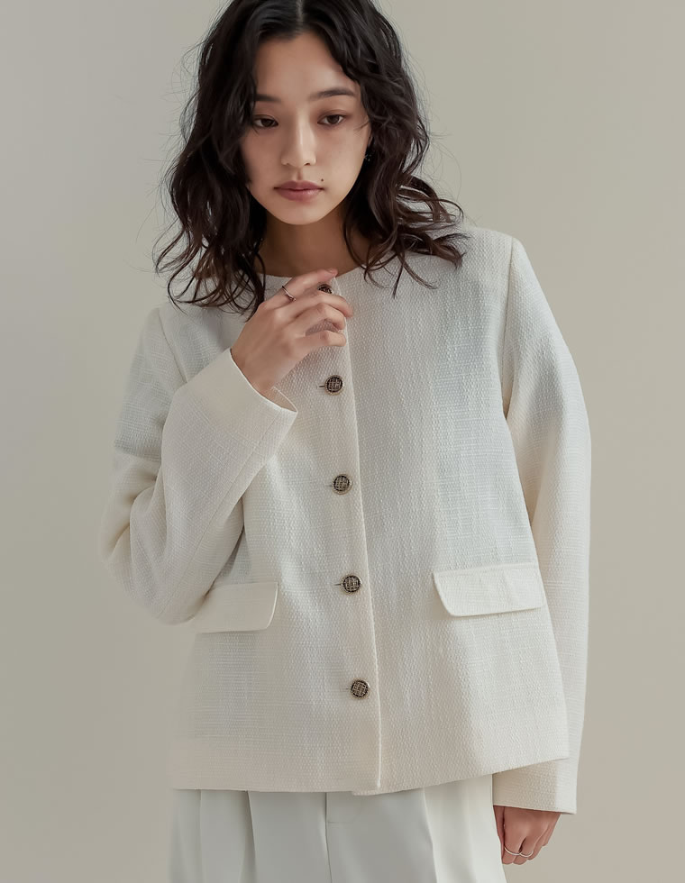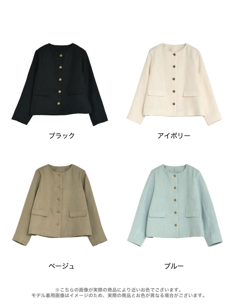 サマーツイードライク金ボタンノーカラージャケット レディース 夏 / ジャケット アウター ツイードジャケット トップス オケージョン スーツ セレモニー 羽織り カーディガン オフィスカジュアル 通勤 金ボタン