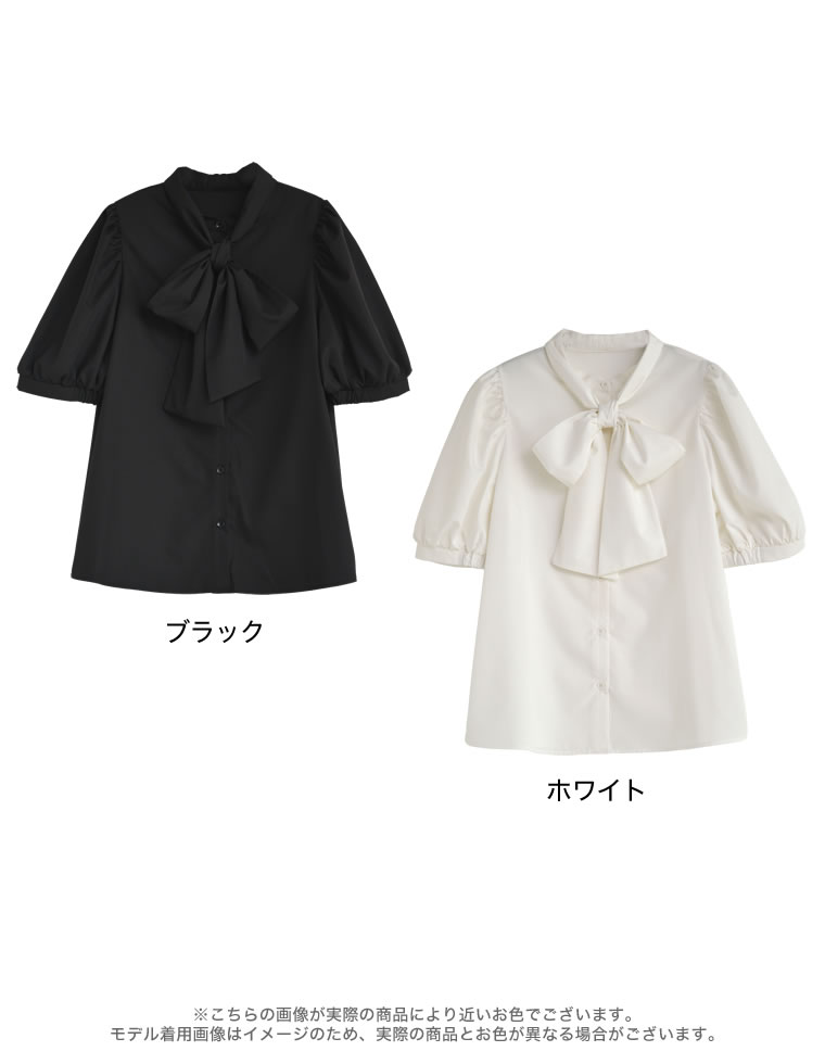 【全品2BUY15%OFFクーポン】ブロード半袖ボウタイブラウス レディース 春 夏 リエディ / トップス シャツ ブラウス リボン ボウタイブラウス 半袖 ボリュームスリーブ ボリューム袖 オフィスカジュアル 通勤 オケージョン