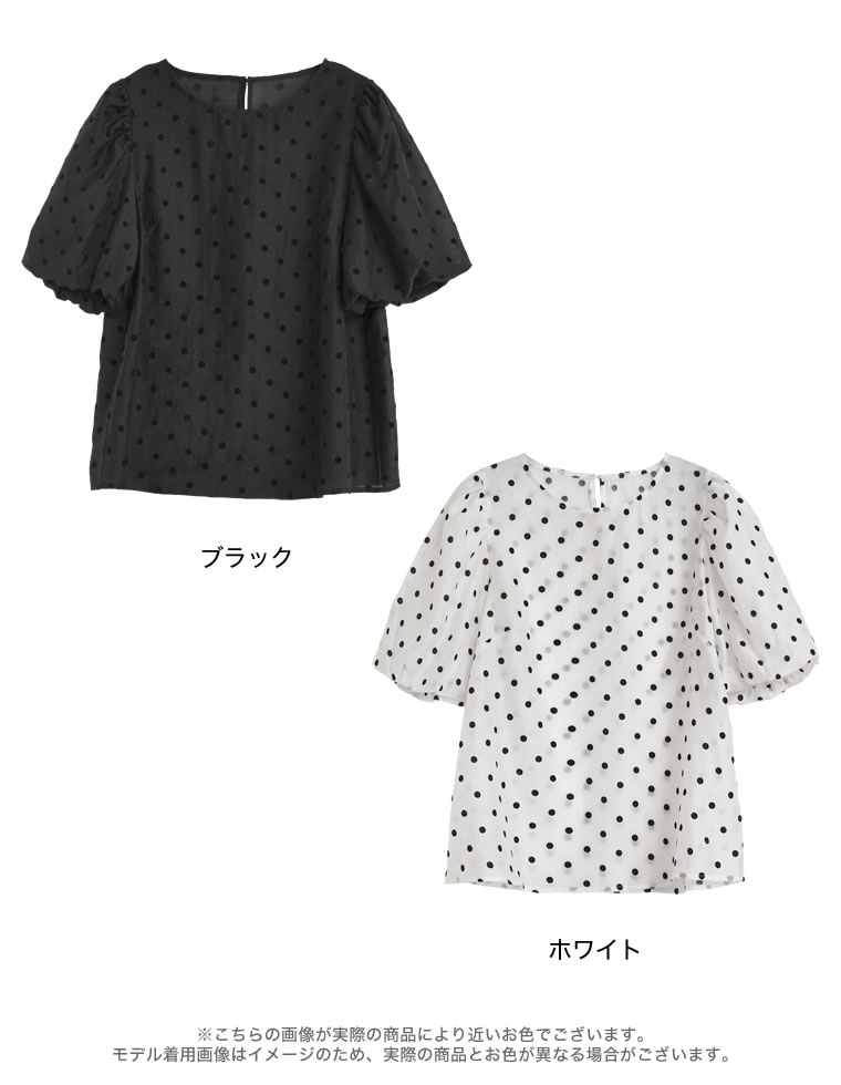 ≪5月20日発売≫M/Lサイズ シアーフロッキードットバルーンスリーブブラウス レディース 春 夏 リエディ / トップス シャツ ブラウス 半袖 シアー バルーンスリーブ ボリューム袖 オケージョン オフィスカジュアル 通勤 二の腕カバー