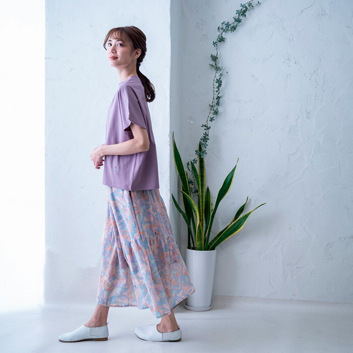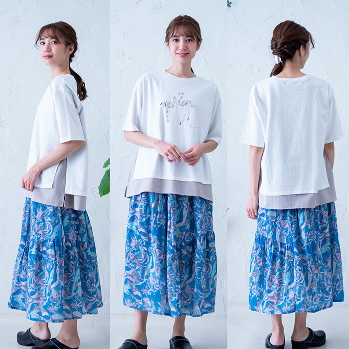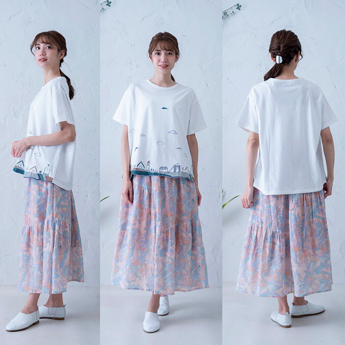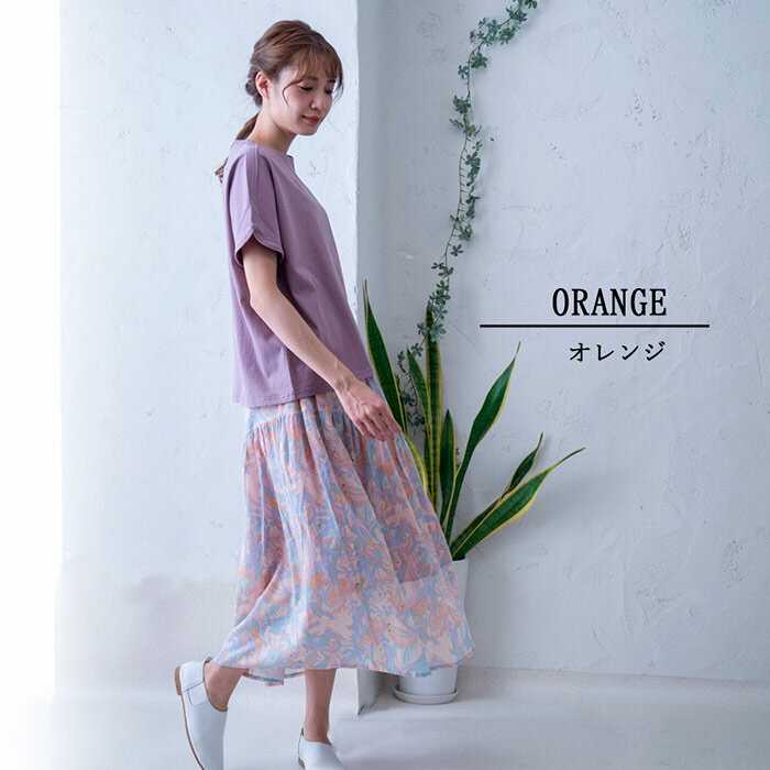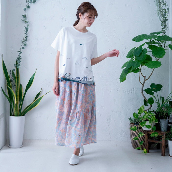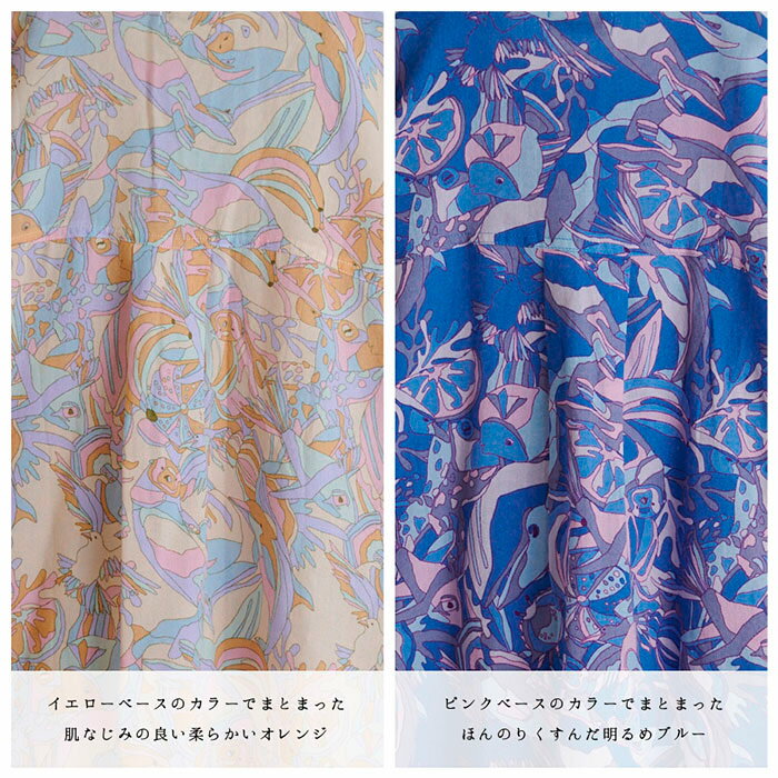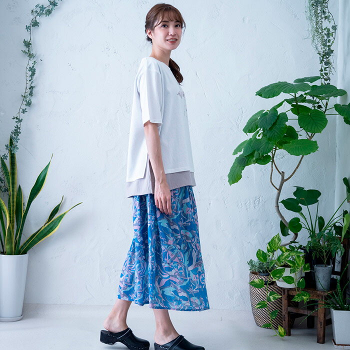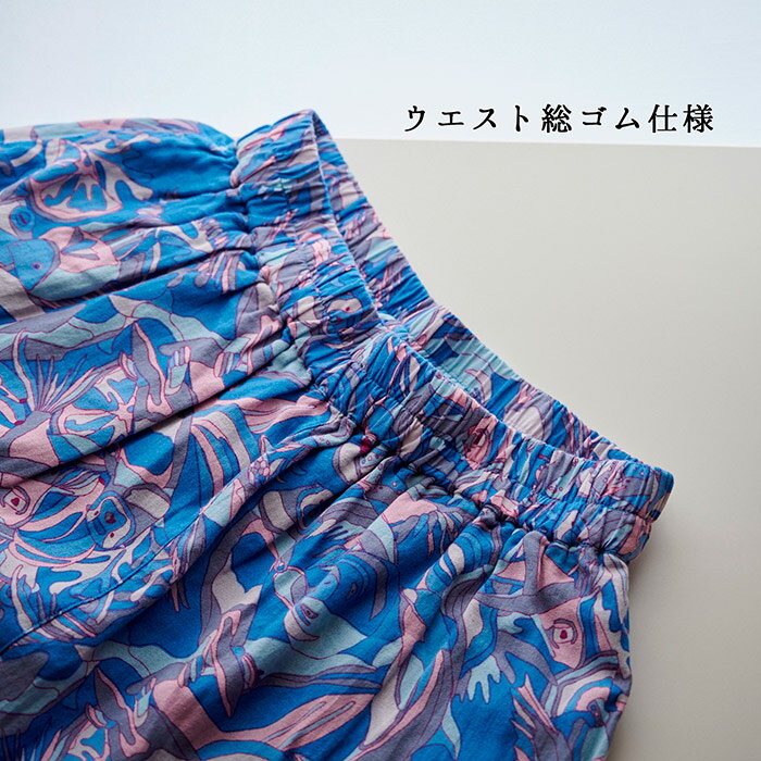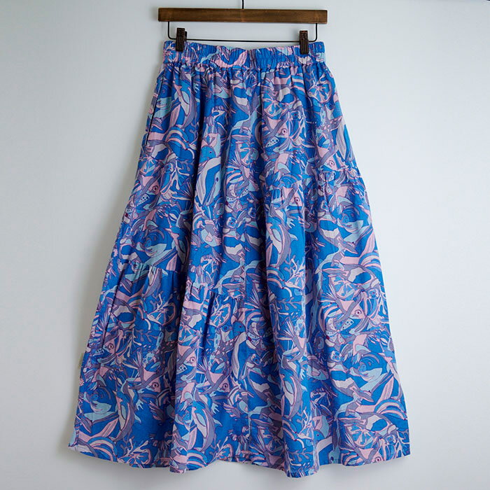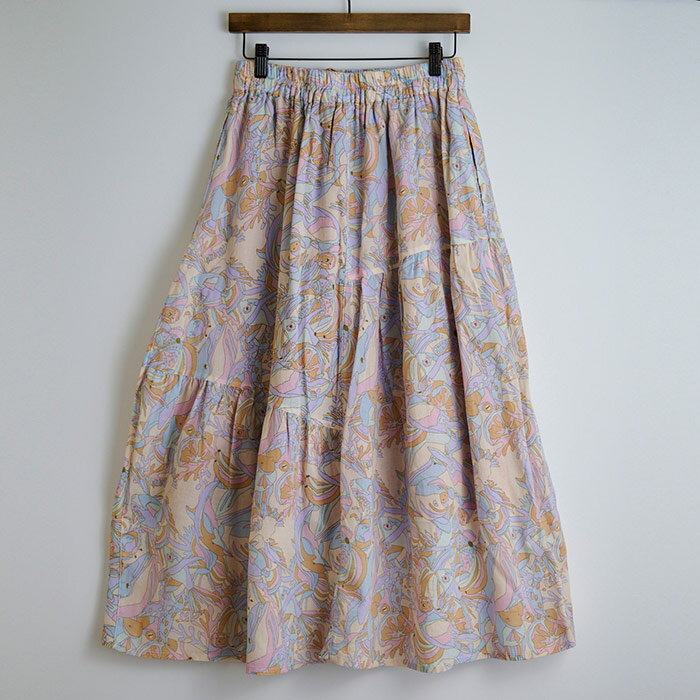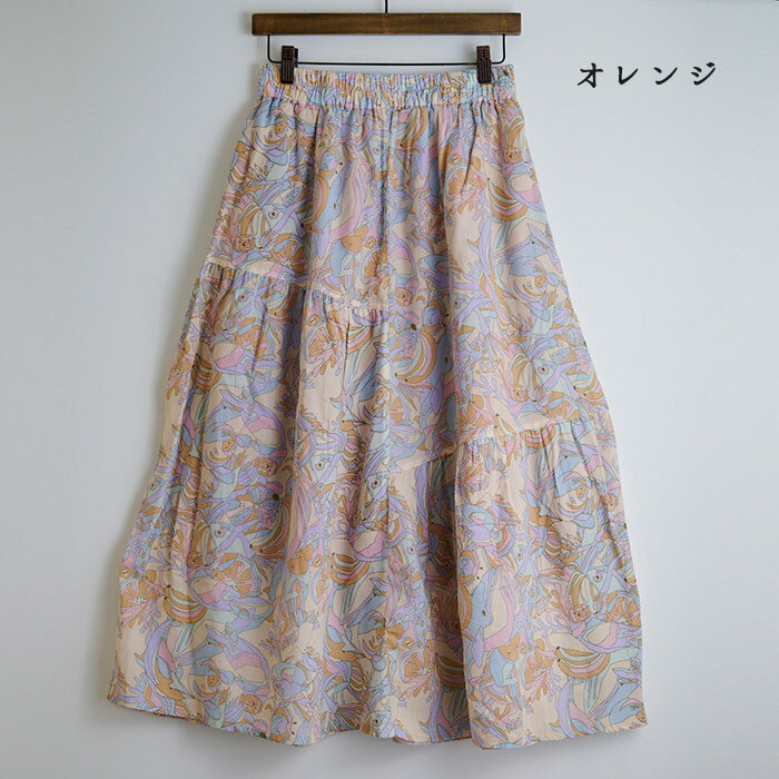 総柄プリント切替えギャザースカート レディース ボトムス 大人の ナチュラル カジュアル イマゴ アニマル ラッコ タコ さかな