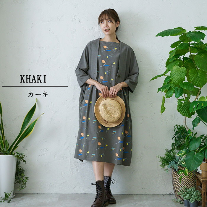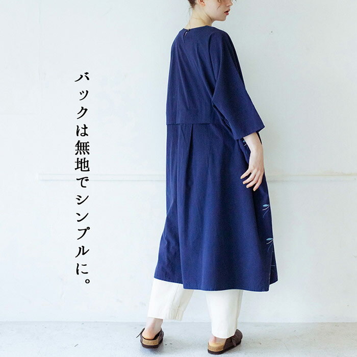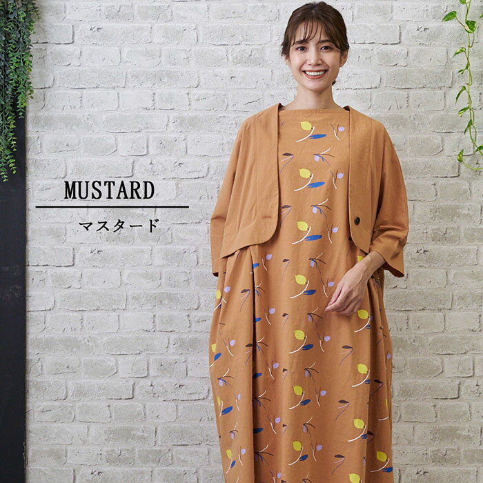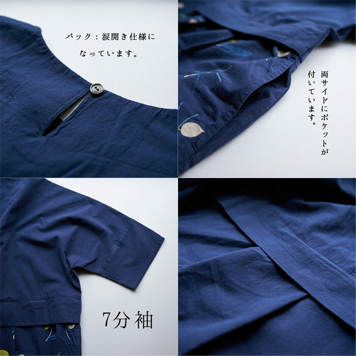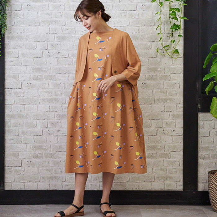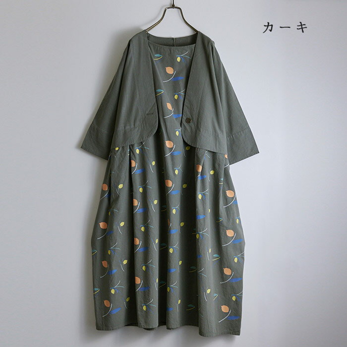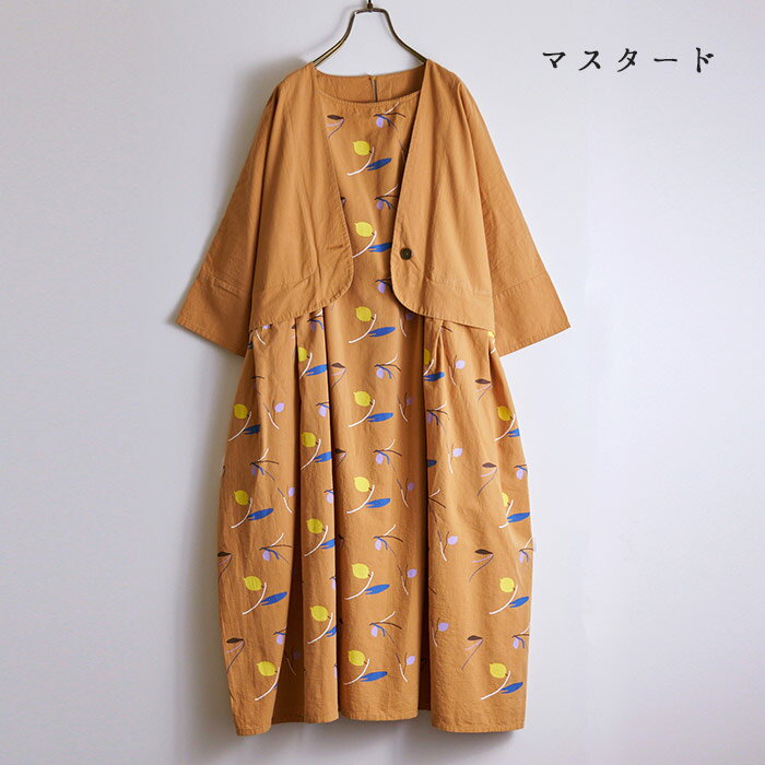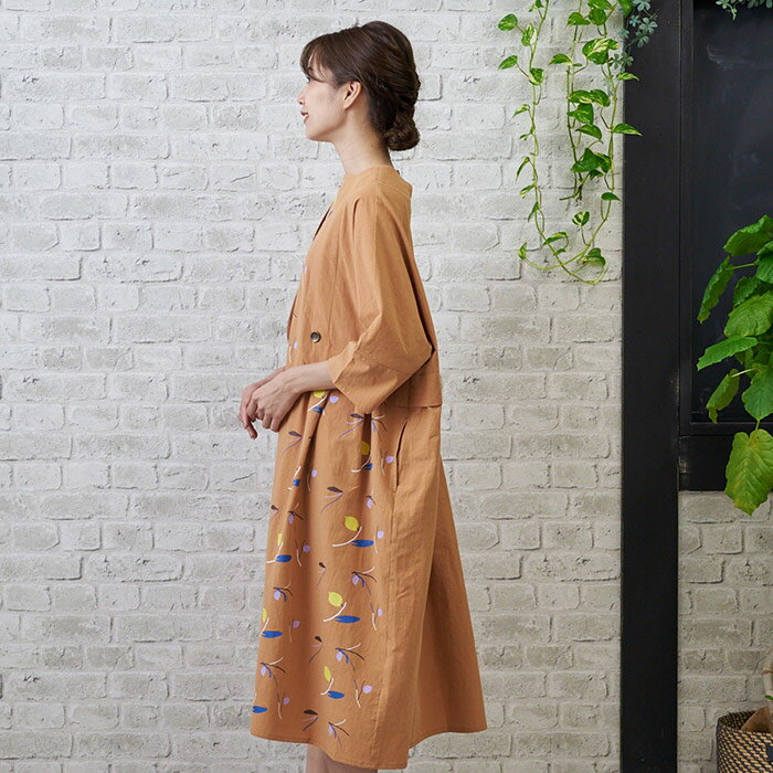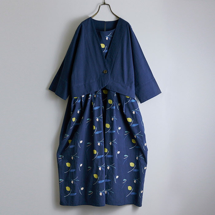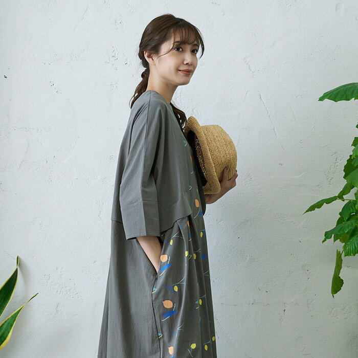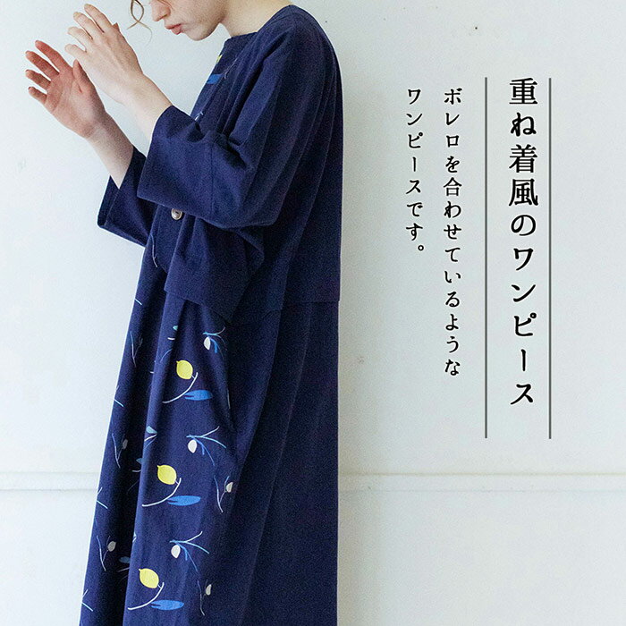 2wayレモンプリントワンピース レディース ワンピース 7分袖 大人の ナチュラル カジュアル イマゴ 重ね着風 ゆったり