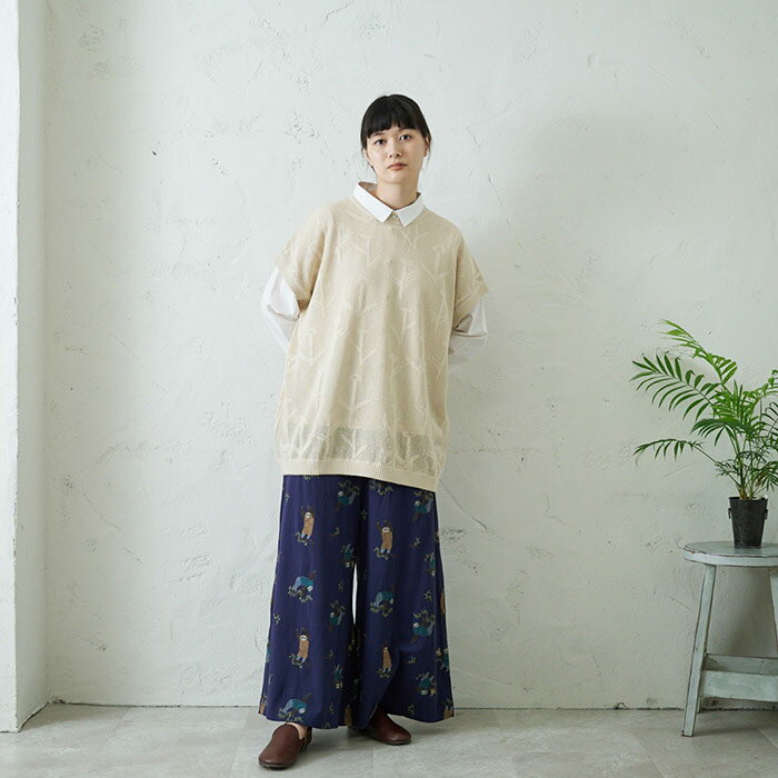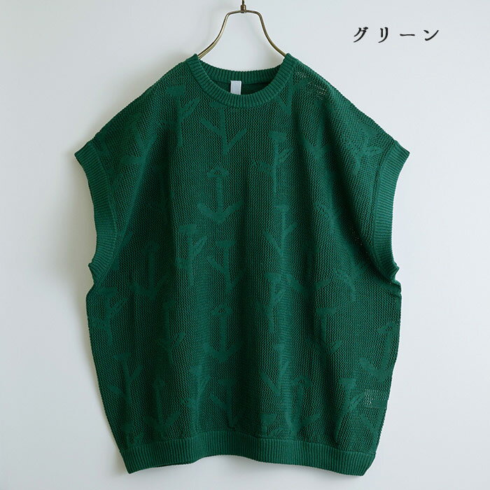 花編みニットベスト レディース トップス 大人の ナチュラル カジュアル イマゴ ゆったりめ