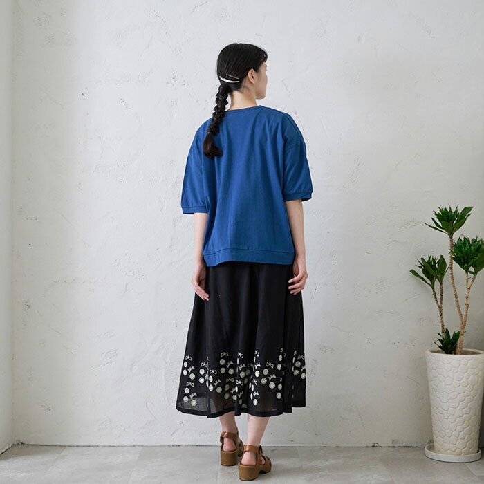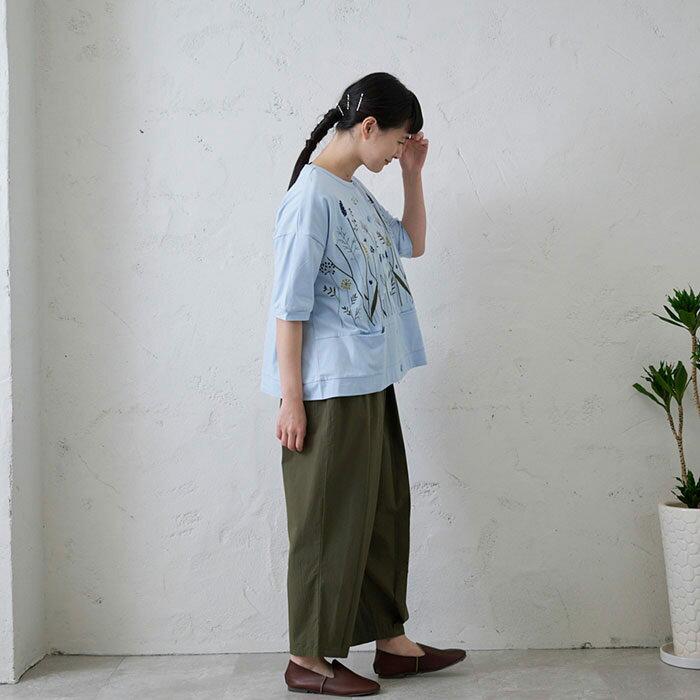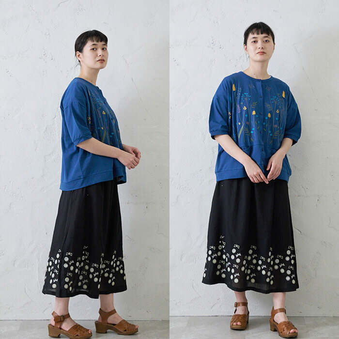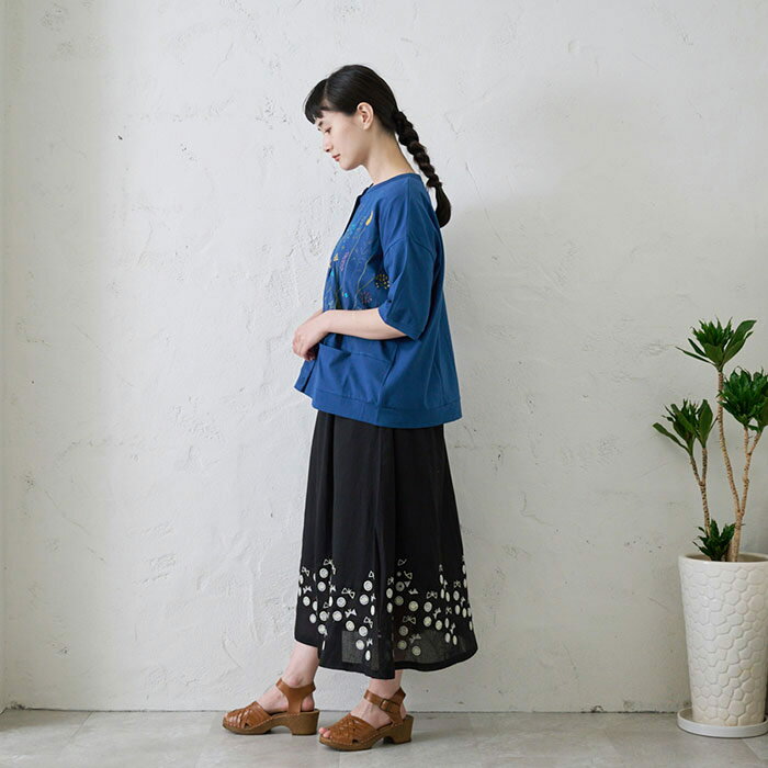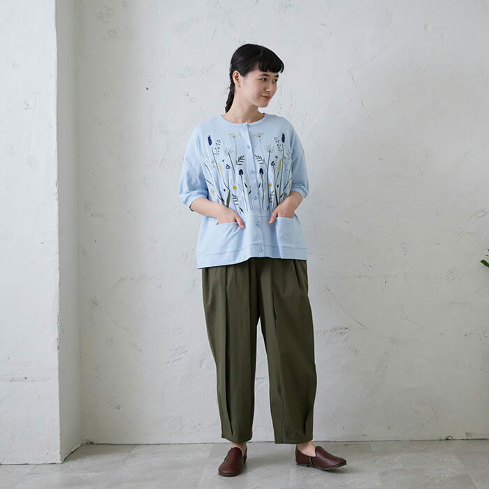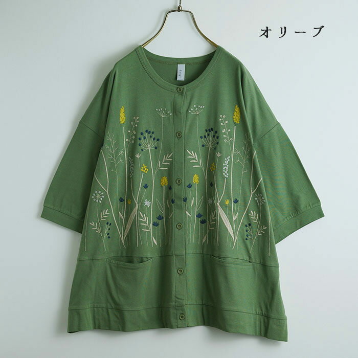 切替え花刺繍カーディガン レディース トップス 6分袖 大人の ナチュラル カジュアル イマゴ 植物 羽織り やわらかな