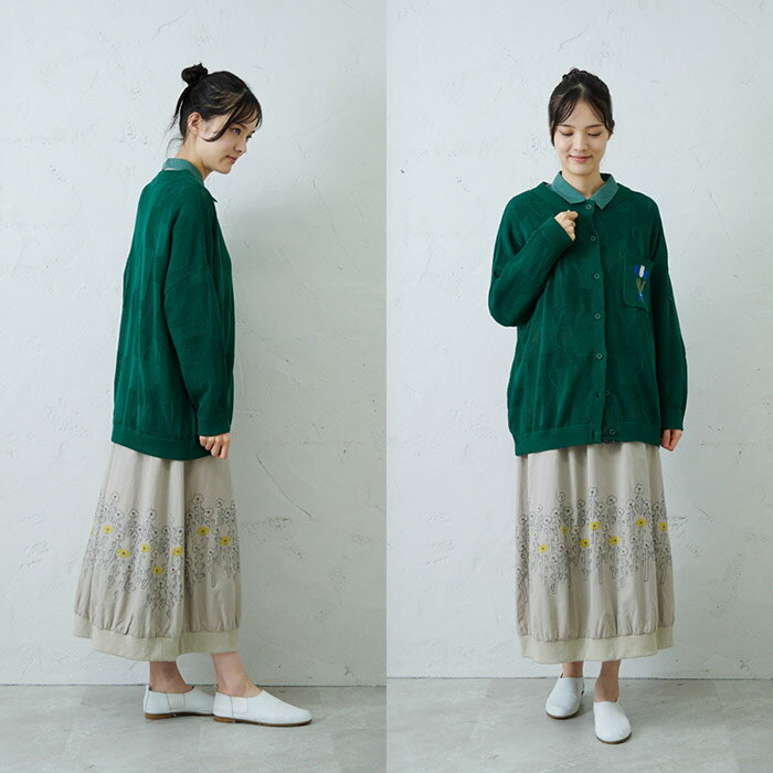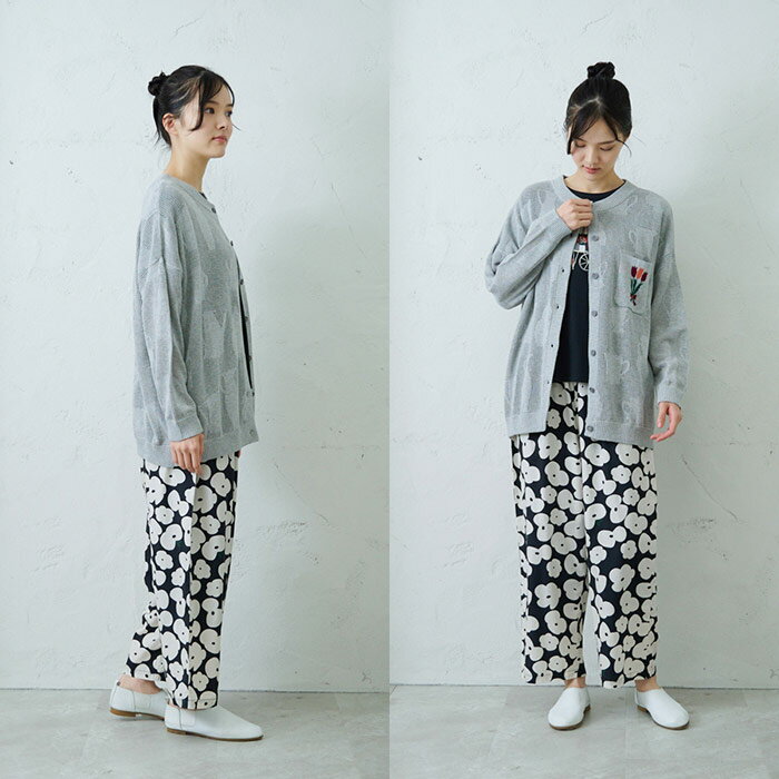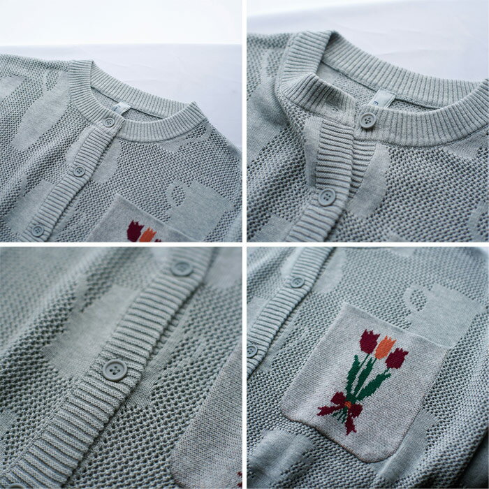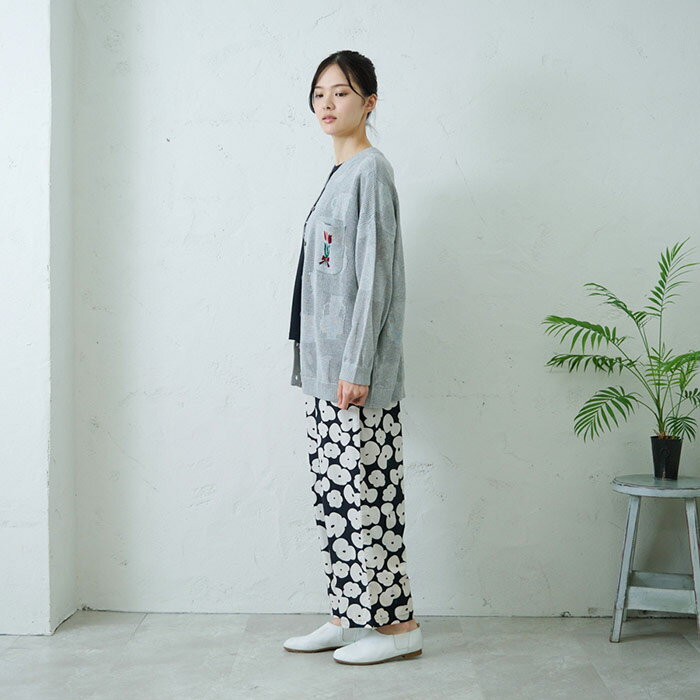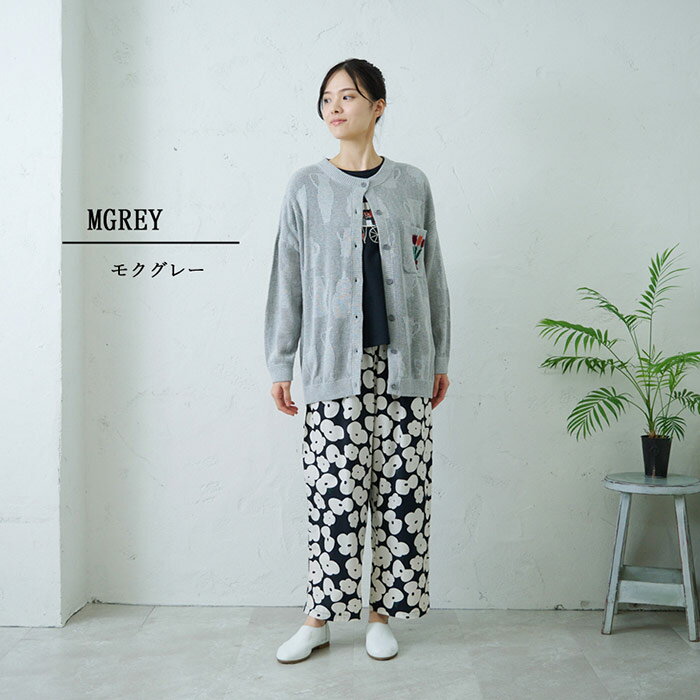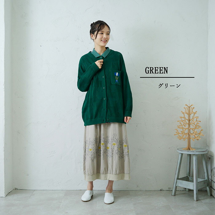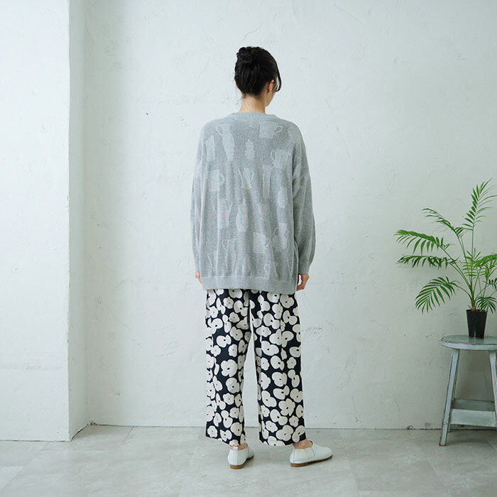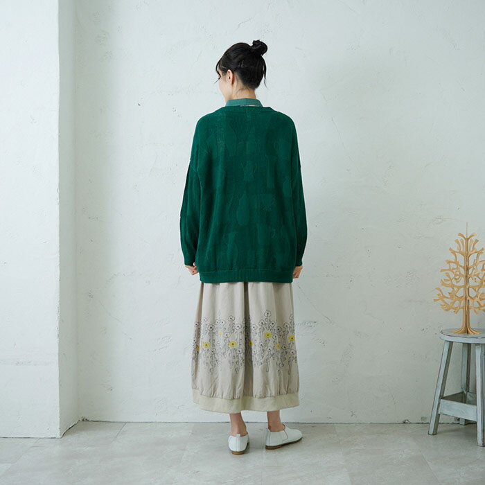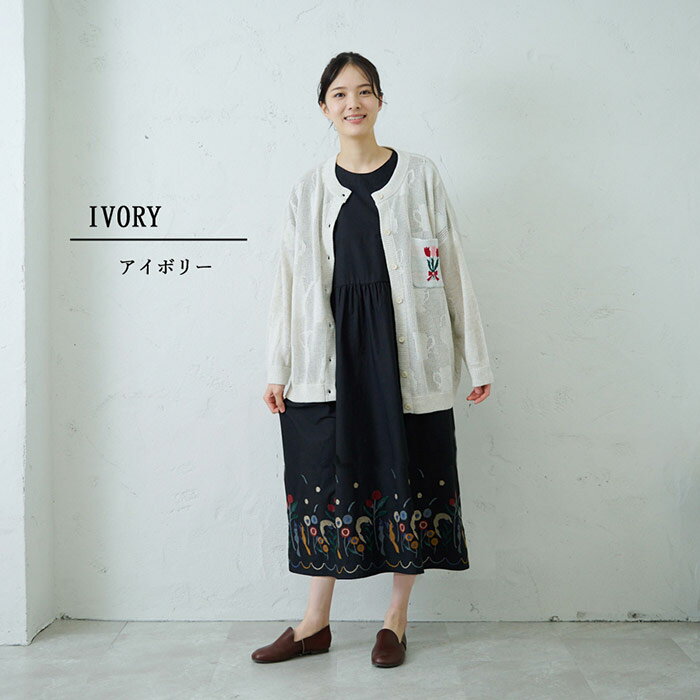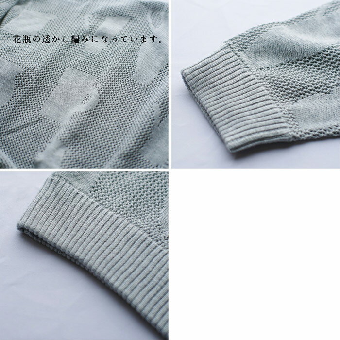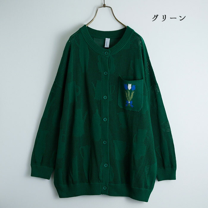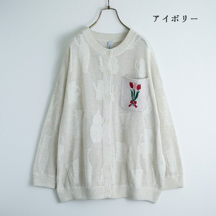 花瓶とお花カーディガン emago レディース トップス 長袖 羽織り 大人の ナチュラル カジュアル イマゴ 花 透かし編み