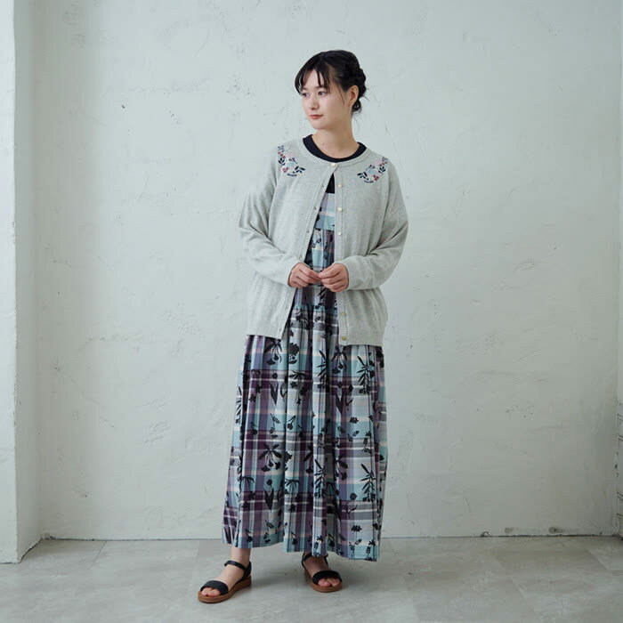 衿まわりフラワー刺繍カーデ emago ナチュラル カジュアル 大人 かわいい 北欧 刺繍 ニット トップス