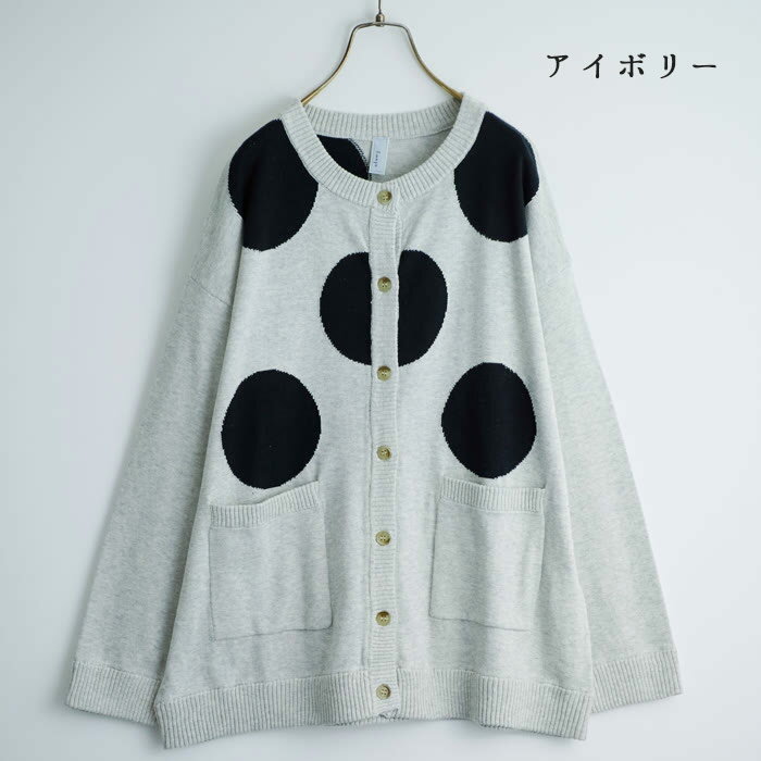 ドットインターシャカーデ emago ナチュラル カジュアル 大人 かわいい 北欧 ドット ニット トップス