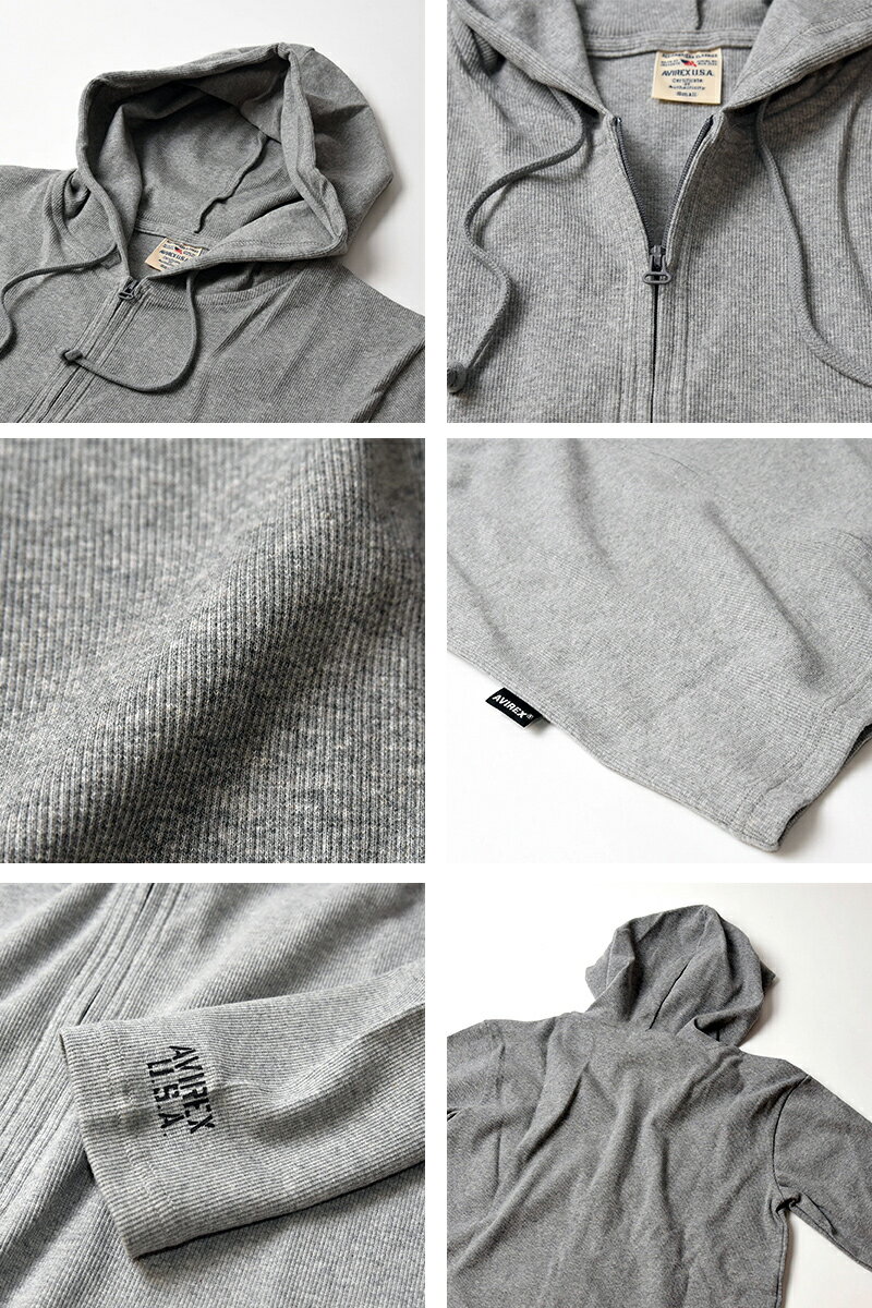 【ポイント10倍・送料無料】AVIREX アビレックス 長袖 リブ ジップパーカー RIB ZIP PARKA 6153641 アヴィレックス デイリー メンズ カットソー パーカー フード 羽織 インナー タイト フィット ジムウェア トレーニング おしゃれ 無地 ブランド