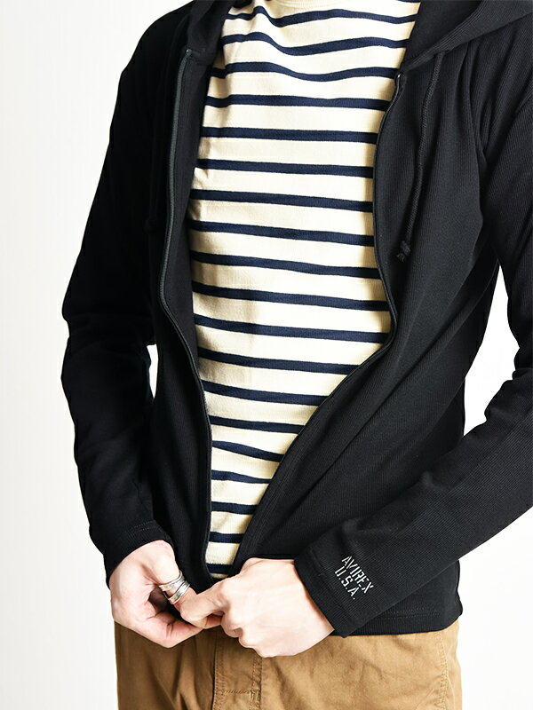 【ポイント10倍・送料無料】AVIREX アビレックス 長袖 リブ ジップパーカー RIB ZIP PARKA 6153641 アヴィレックス デイリー メンズ 男性 紳士 カットソー パーカー フード フーディー 羽織 ストレッチ