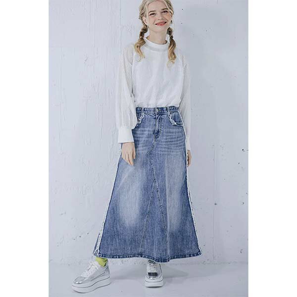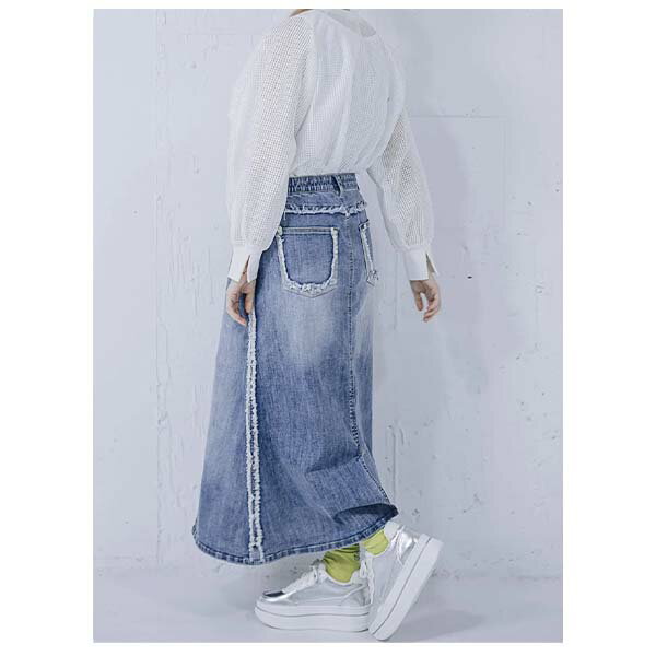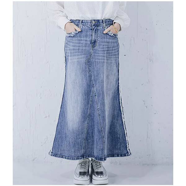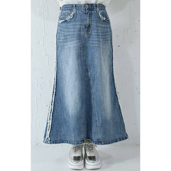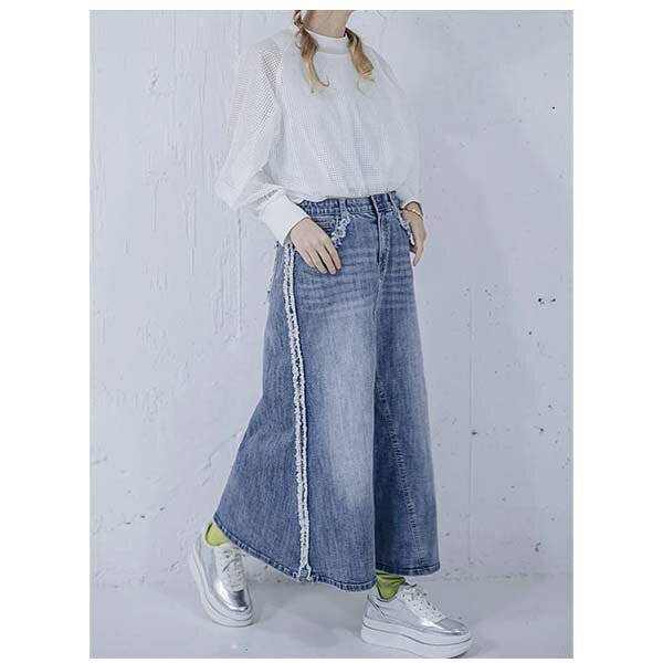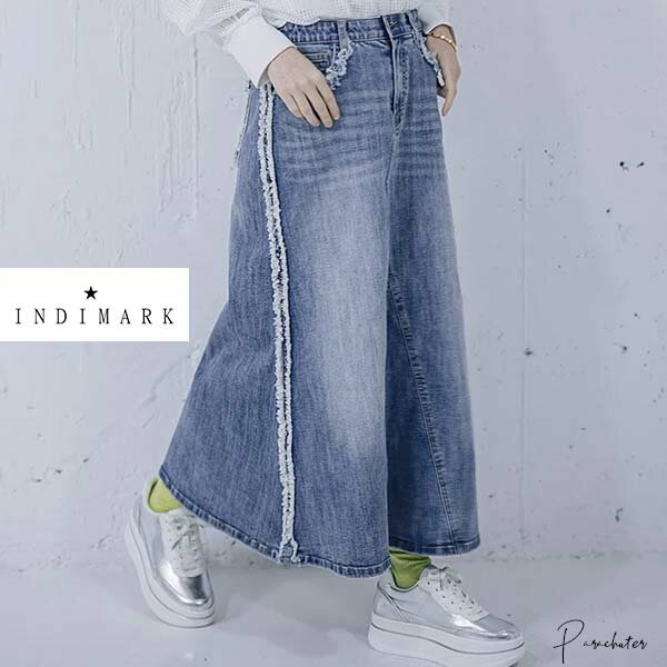 INDIMARK インディマーク フリンジ スカート ユーズド加工 WJ177 デニム ワイド スカート 人気 30代 40代 50代 60代 セレクトショップ パラシューター インディマーク 正規取扱店 オンライン ショップ