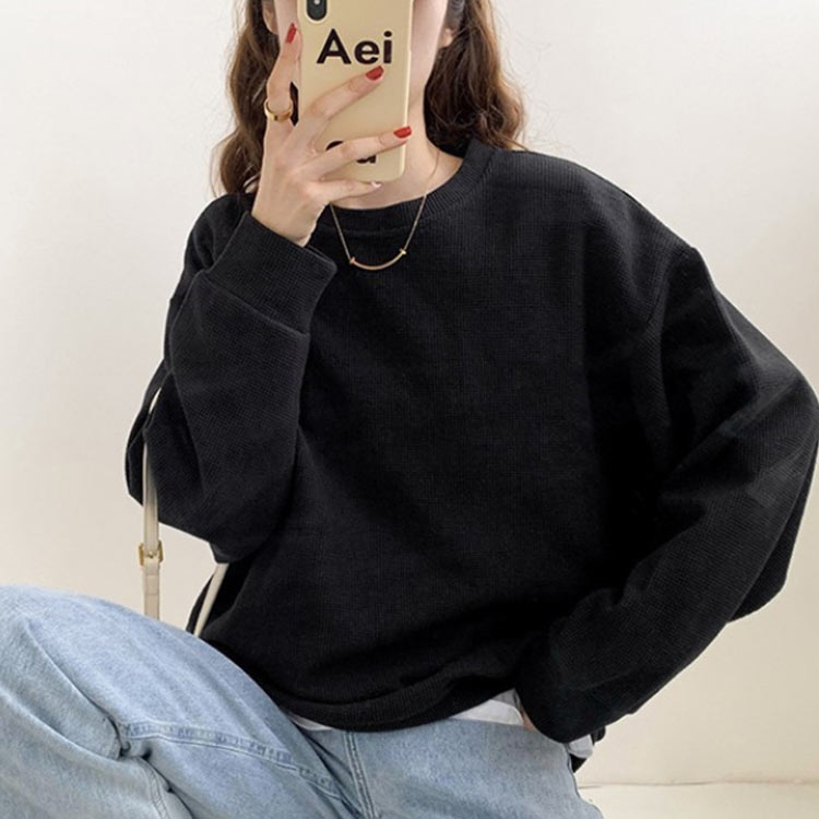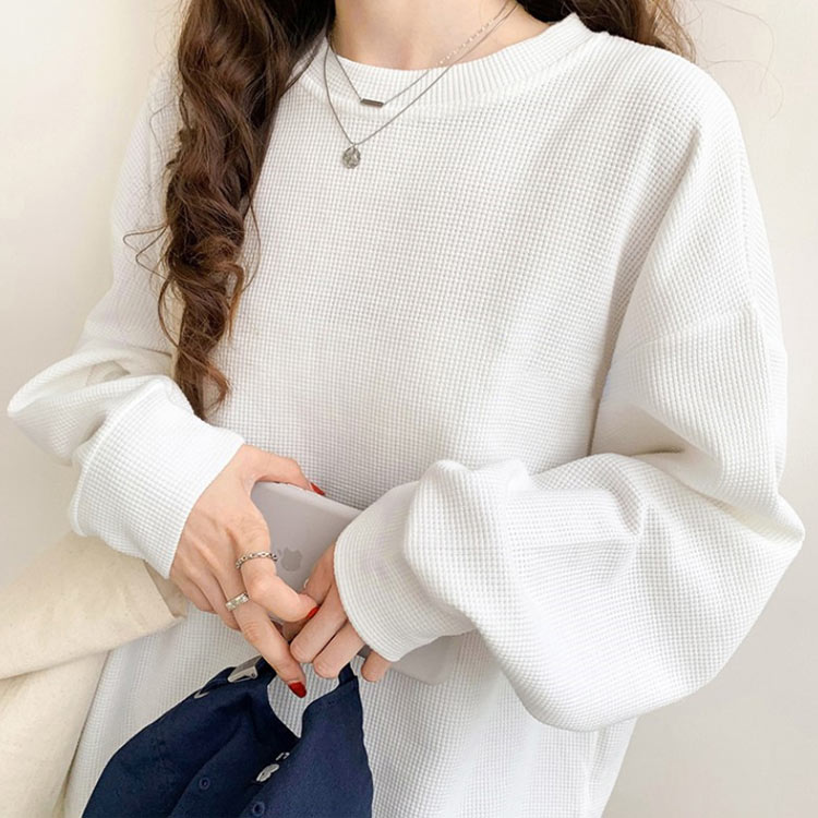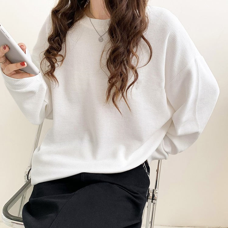 ゆったり ラウンドネック 長袖 春 tシャツ クルーネック レディース プルオーバー トップス ワッフル トレーナー ワッフルTシャツ 大きいサイズ シンプル おしゃれ 20代 30代 体型カバー トレーナー 秋
