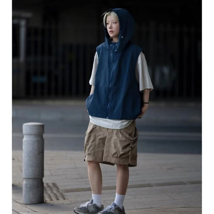 ノースリーブ ベスト レディース ワッフル レイヤード 前開き 体型カバー パーカー パーカーベスト トップス 重ね着 ゆったり ベスト 無地 アウター 夏 春 秋 送料無料