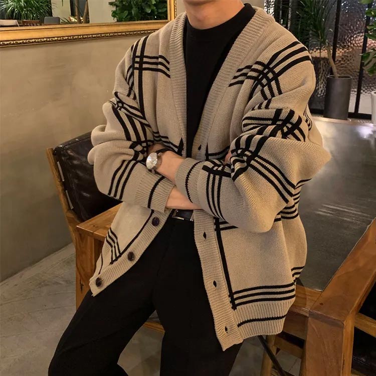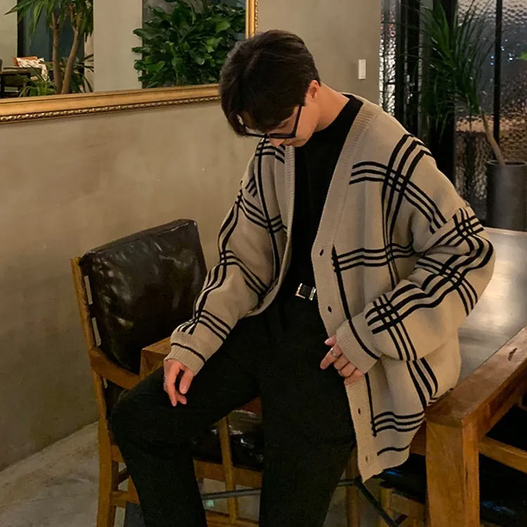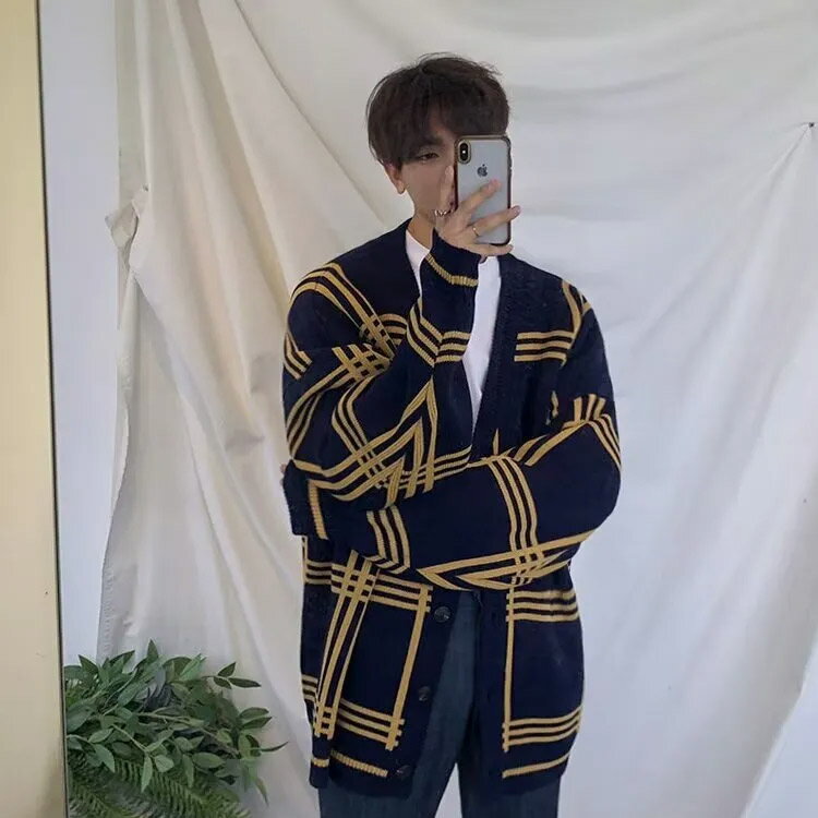 v ネック カーディガン メンズ チェック柄 配色 スエット ニット カーディガン 秋冬 長袖 春 秋 おしゃれ きれいめ メンズ アウター ニットカーディガン レディース 韓国風 ストリート 羽織り