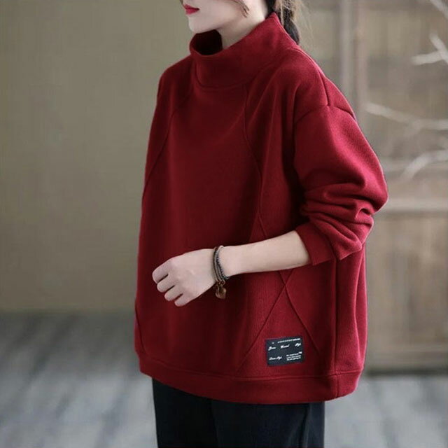 裏フリース 防寒 カジュアル ボトルネック 長袖 裏起毛 裏起毛 トレーナー プルオーバー ハイネック あったか 暖かい レディース 裏起毛 シンプル トップス ゆったり ビッグシルエット オーバーサイズ 大きめ チュニック タートルネック 無地 おしゃれ 秋冬 冬