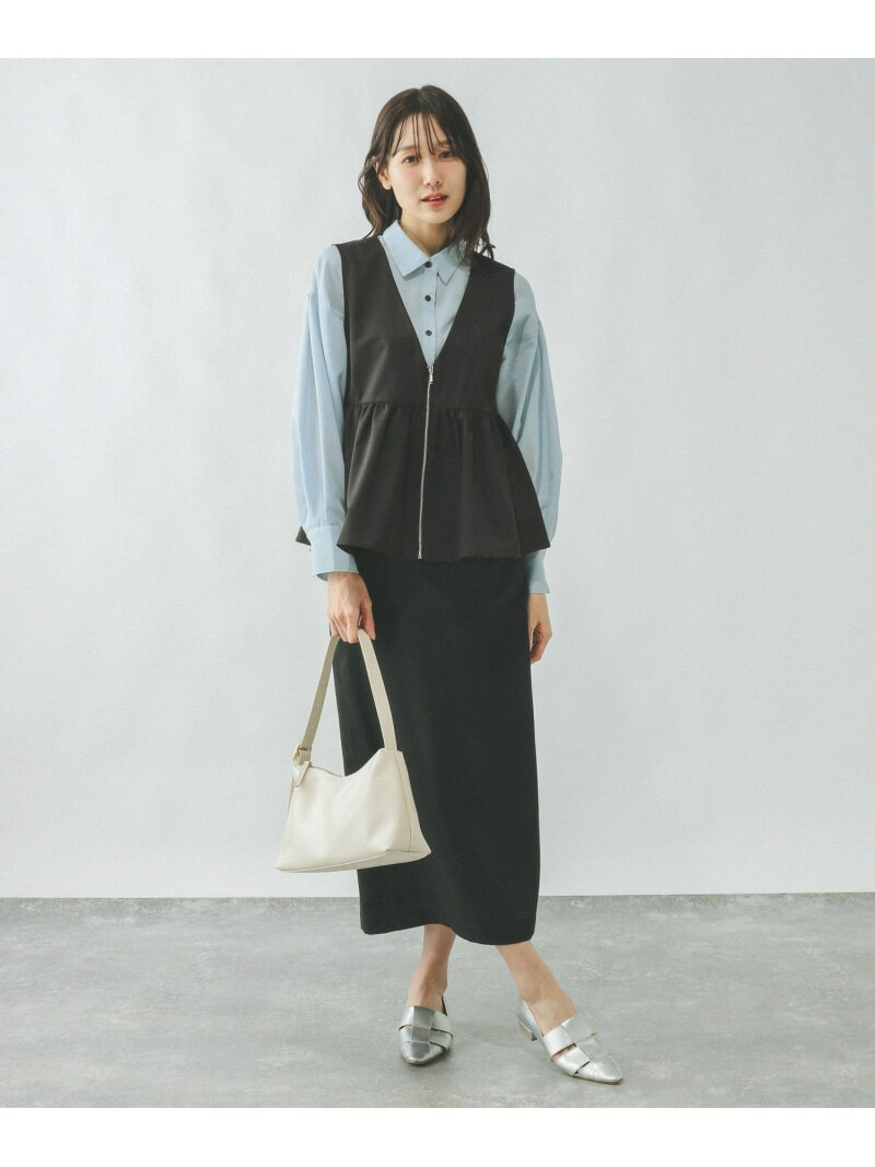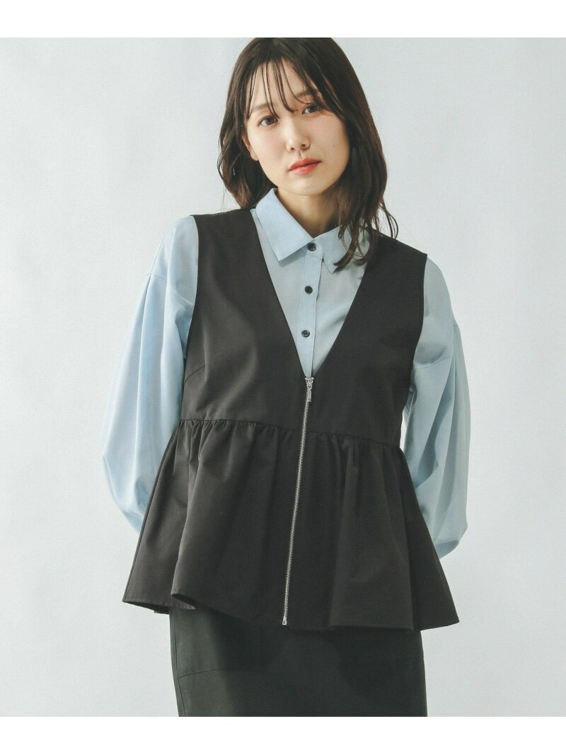 ペプラムZIPベスト/323367 GLOBAL WORK グローバルワーク トップス ベスト・ジレ ブラック ベージュ【送料無料】[Rakuten Fashion]