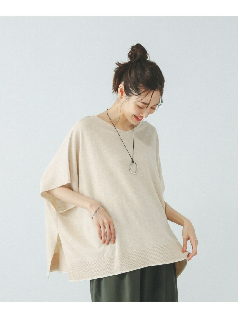 スッキレイさらさらポンチョ/288071 GLOBAL WORK グローバルワーク トップス ニット ブルー ベージュ グレー[Rakuten Fashion]