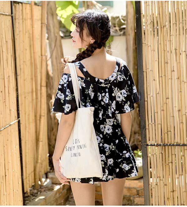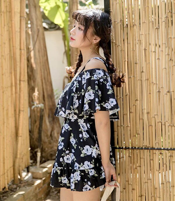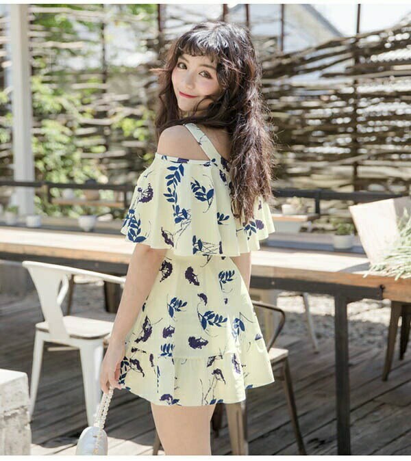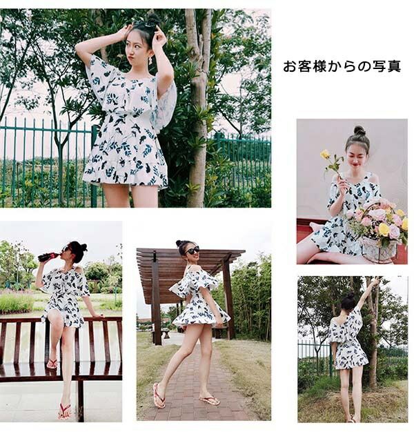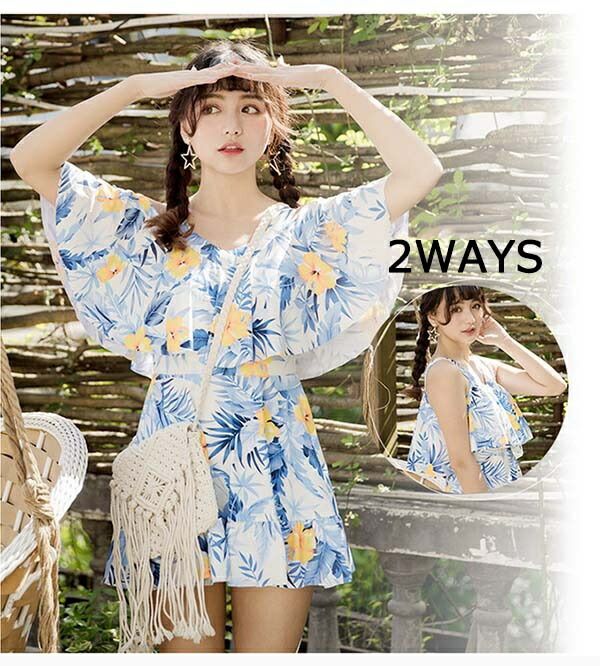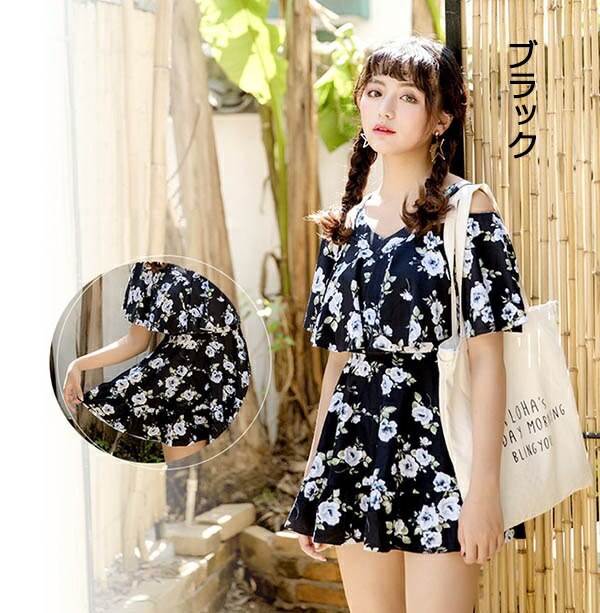 ワンピース水着 ぽっちゃり 花柄 肩出し 2WAYS レディース 体型カバー 着痩せ ワイヤー入り パッド付 大きいサイズ 6L 水着 ビーチ 海デート 温泉 韓国 セクシー 大人可愛い M/L/XL/2XL/3XL/4XL/5XL オフホワイト 青 黄色 黒 緑 df134n1n1d4