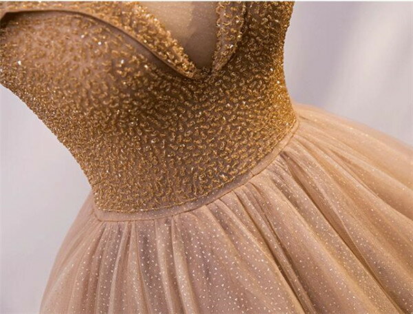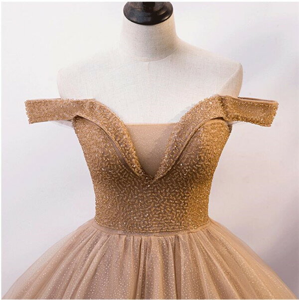 カラードレス 茶色 ドレス エレガント オフショルダー パーティードレス Aライン パニエ付き ウェディングカラードレス 二次会 演奏会 結婚式 忘年会 サイズ指定ok S/M/L/XL/2XL d9299c0c0d4