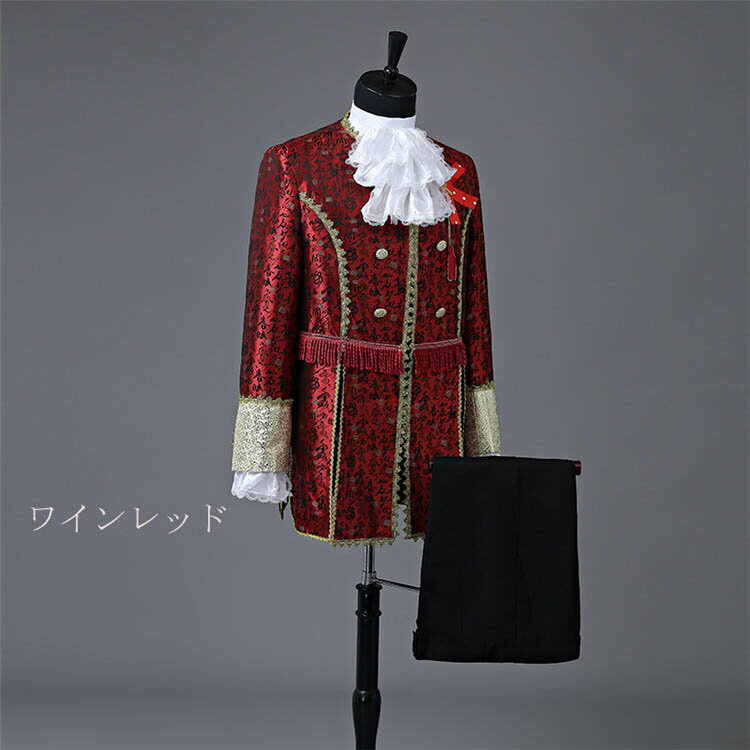 【サイズ有XS/S/M/L/XL】コスプレ衣装 演出服 王子様 メンズ 貴族服装 公爵 宮廷服 男性用スーツ 6点セット 中世 大人 演奏会 舞台ステージ衣装 クリスマス仮装 ハロウィン衣装 白 ワインレッド 赤 d9085c0c0x0