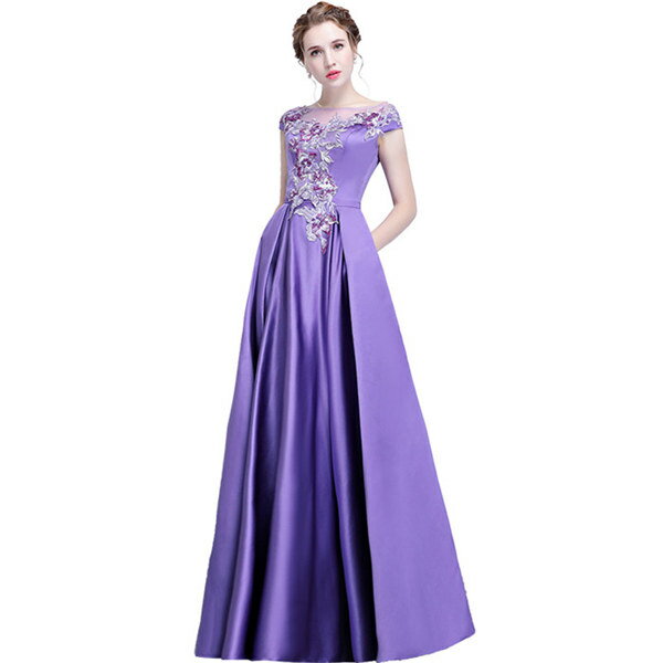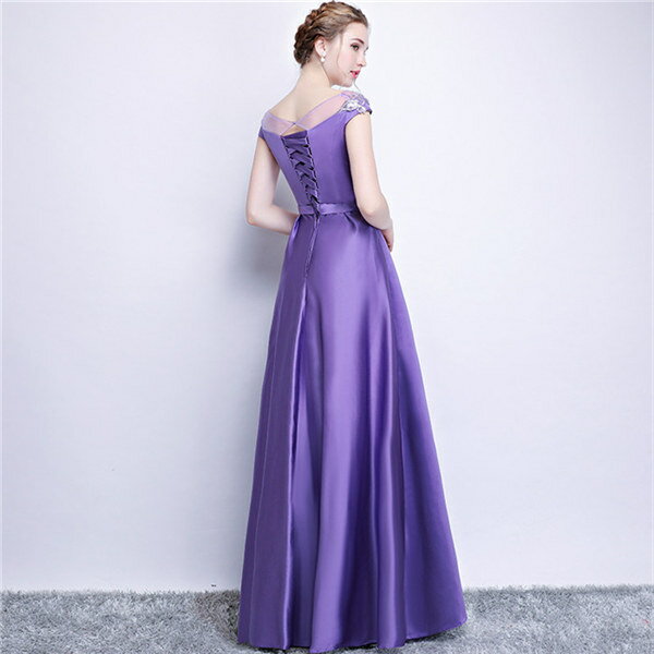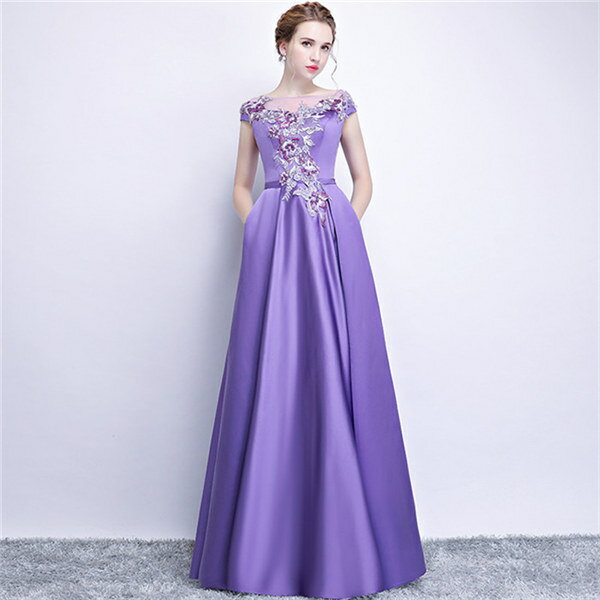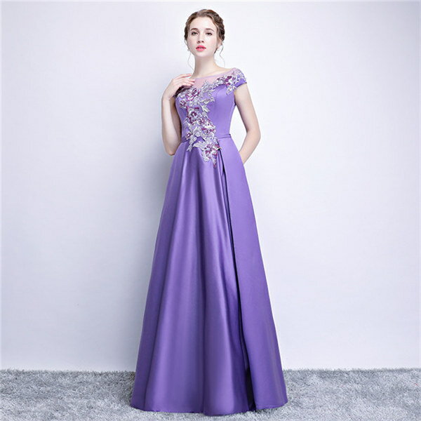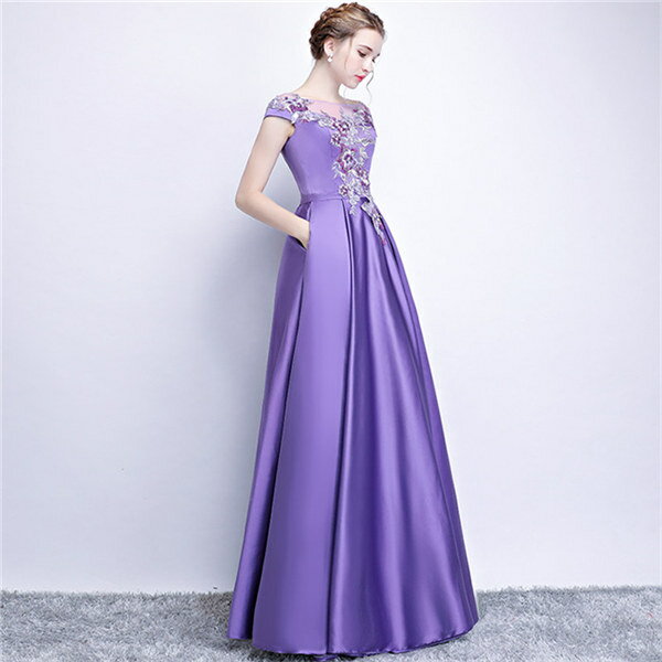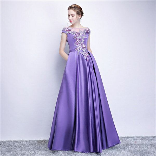 ★500円OFFクーポン配布中★カラオケ 発表会 ドレス イブニングドレス 半袖 ロングドレス パープル 30代 40代 50代 60代 パーティー ミセス 演奏会用ドレス ピアノ 合唱 披露宴 お呼ばれ 結婚式 XS/S/M/L/XL/2XL/3XL