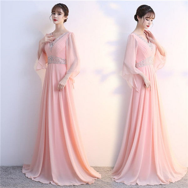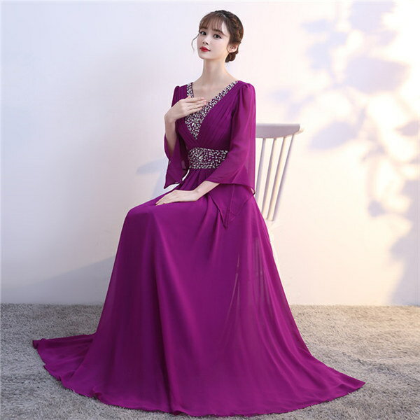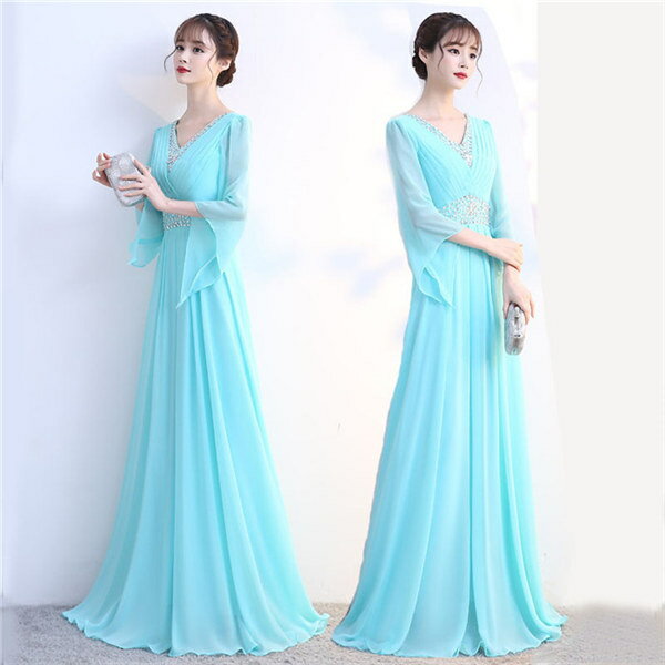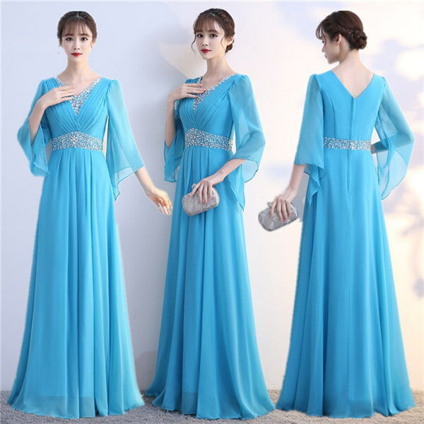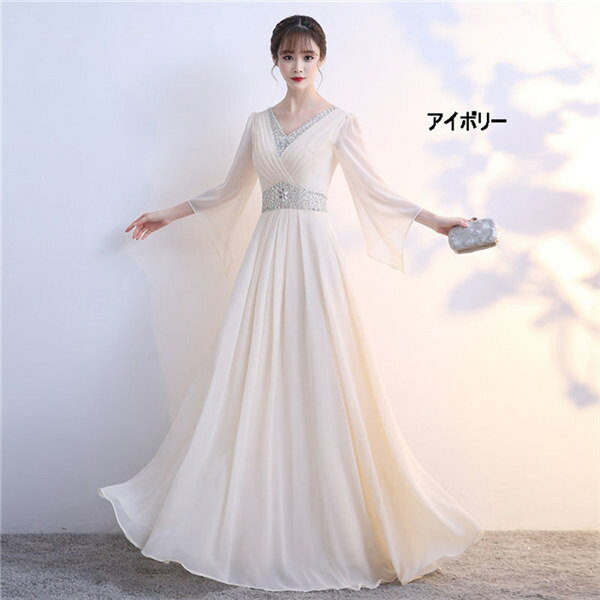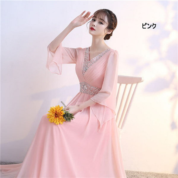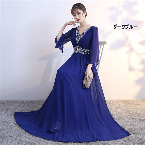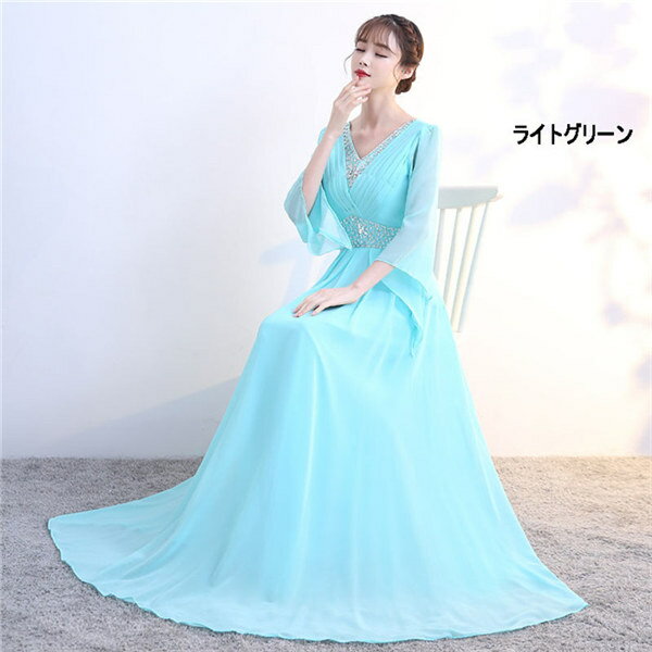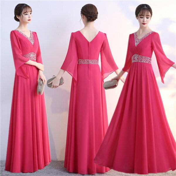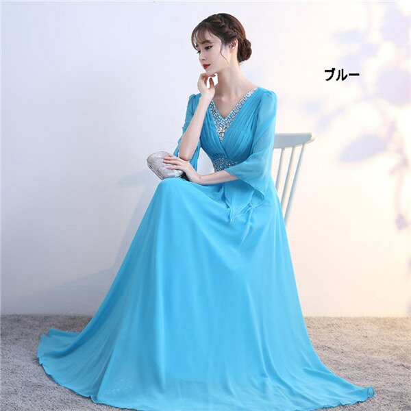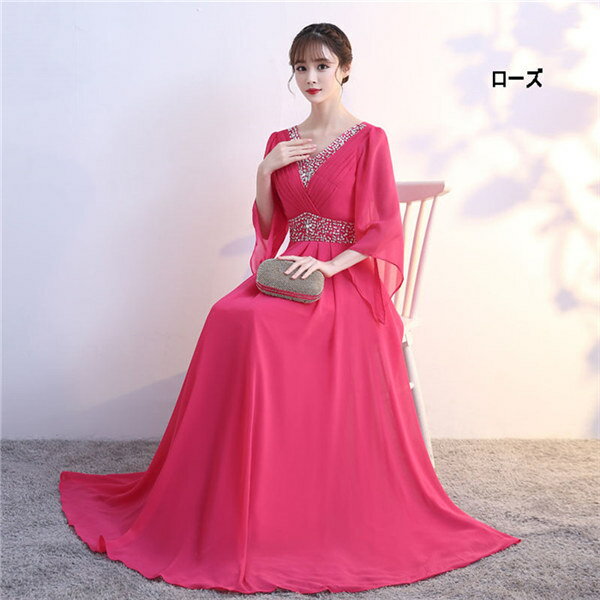 イブニングドレス カラオケドレス 衣装 Vネック ステージドレス パーティードレス ミセス 発表会 演奏会用ドレス ピアノ 合唱 披露宴 舞台衣装 お呼ばれ 結婚式 S/M/L/XL/2XL/3XL/4XL/5XL/6XL ローズ 赤 紫 青 紺 薄緑色 アイボリー ピンク