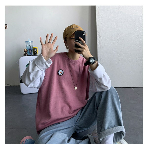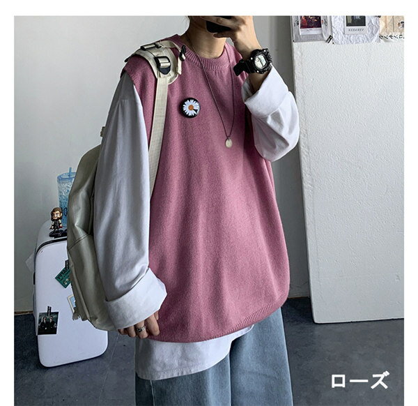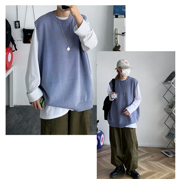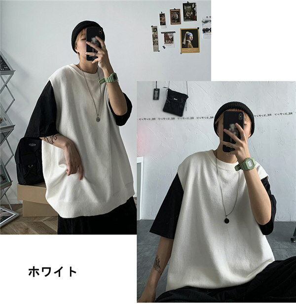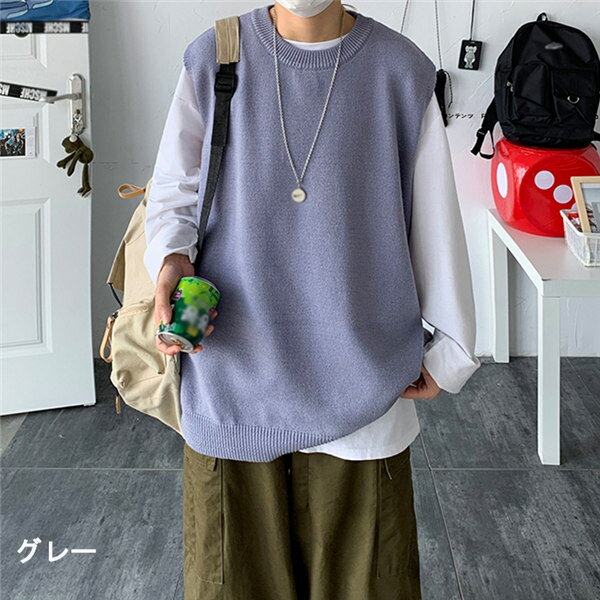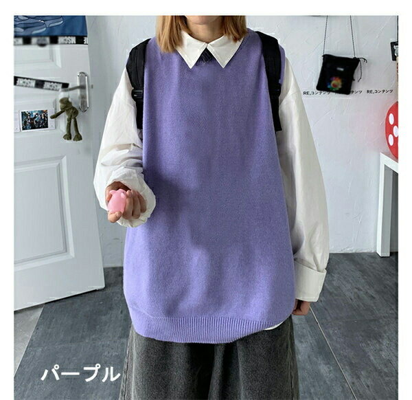 ニットベスト ニット レディース 春 秋 トップス ペアルック シンプル カジュアル ノースリーブ 男女兼用 ペア カップル トップス カットソー 上着 ゆったり オーバーサイズ オシャレ 韓国風 M/L/XL/2XL グレー 黄色 紫 黒 白 緑