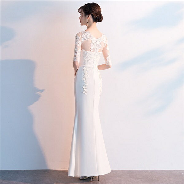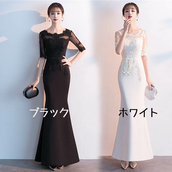 マーメイドドレス 白 ロングドレス 二次会 ロングタイプ レース マーメイドライン パーティードレス セクシー 透け感 ホワイト ブラック 黒 お呼ばれ 発表会 結婚式 謝恩会 【S/M/L/XL/2XL】【代引不可】