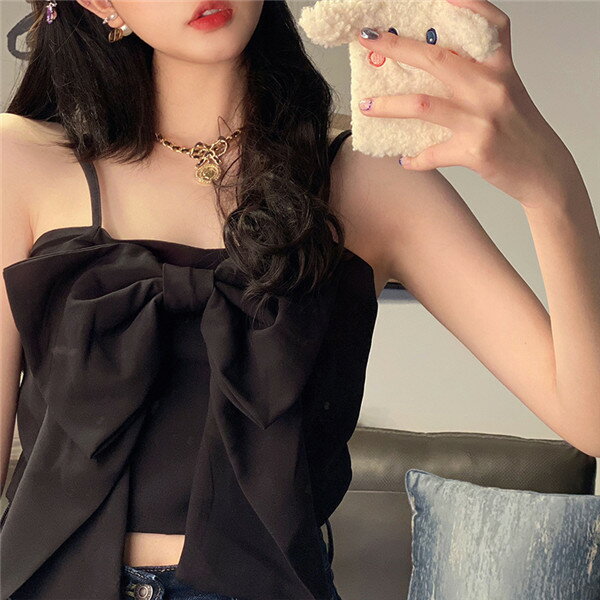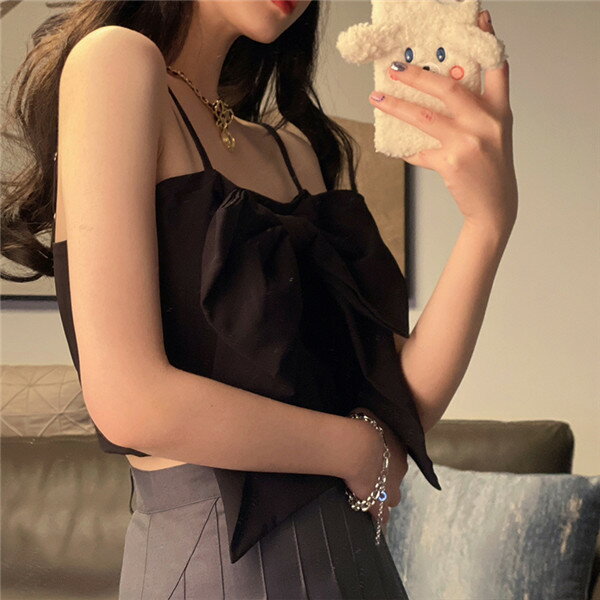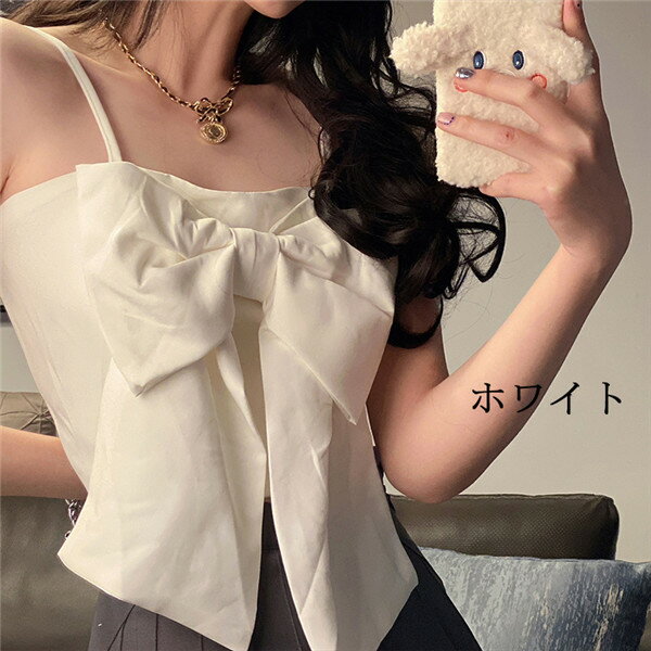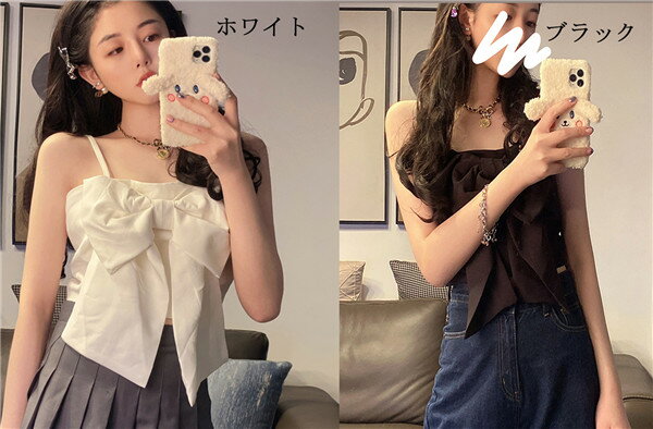トップス キャミソール インナー 肩ひもサイズ調整可能 タンクトップ 無地 フロントリボン カジュアル ガーリー レディース 重ね着 ビスチェ シンプル 可愛い 夏 黒 白