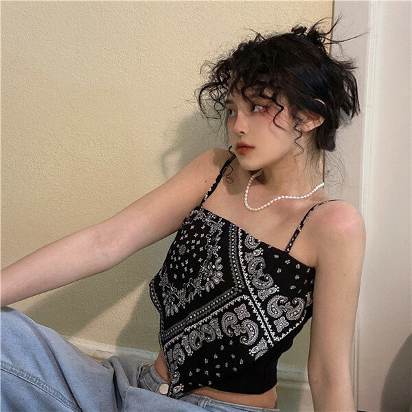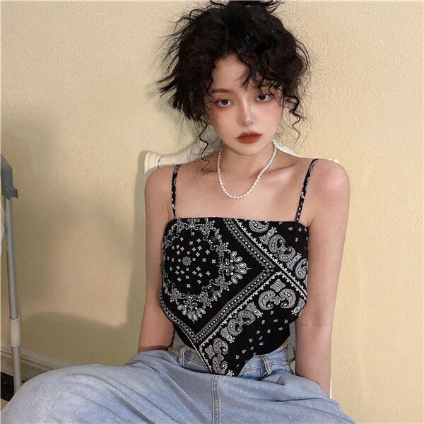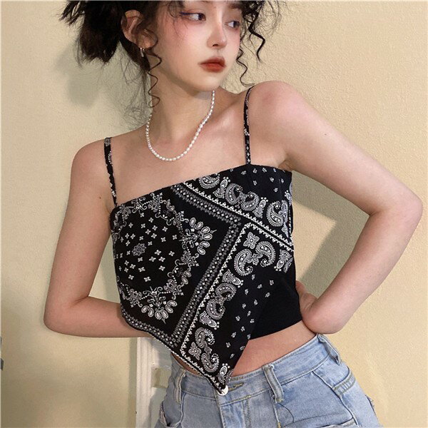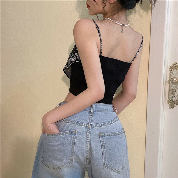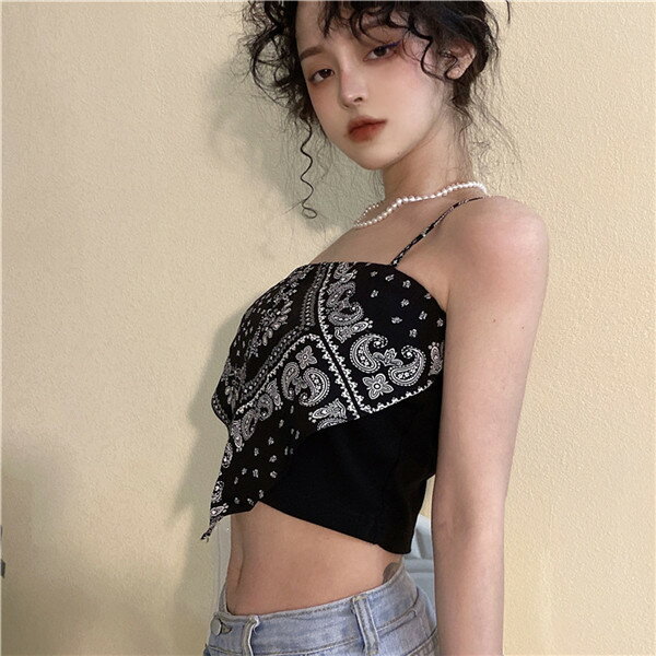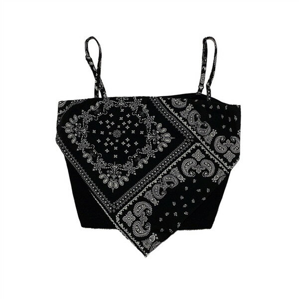 キャミソール カップ付き おしゃれ ショート丈 インナー レディース セクシー エスニック柄 柄あり へそ出し トップス タンクトップ キャミ 肩紐調節可能 タンク デコルテ 春 夏 黒 大人 女性 S/M/L