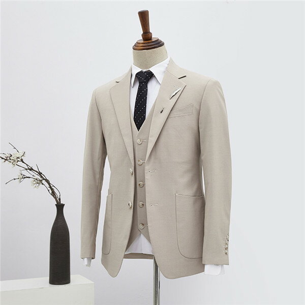 スリーピーススーツ メンズ 2ツボタン ベージュ ビジネススーツ 春秋 2ツ釦 ジレベスト付 3ピーススーツ 紳士服 男性スーツ メンズ大きいサイズおしゃれスーツ 結婚式