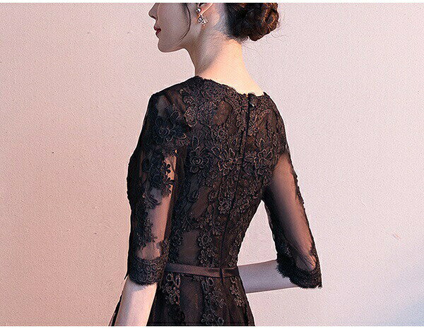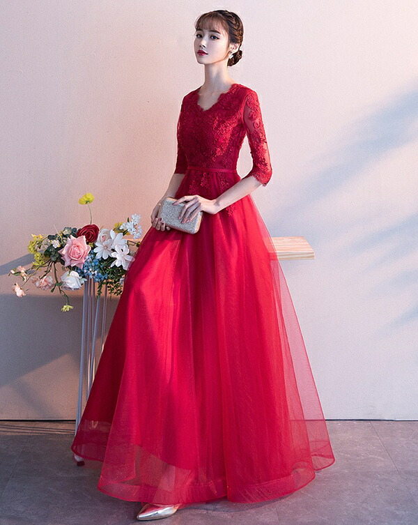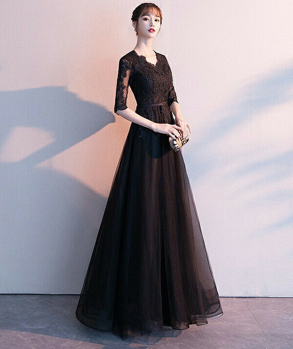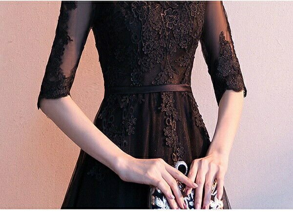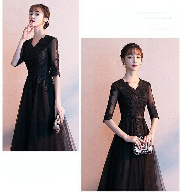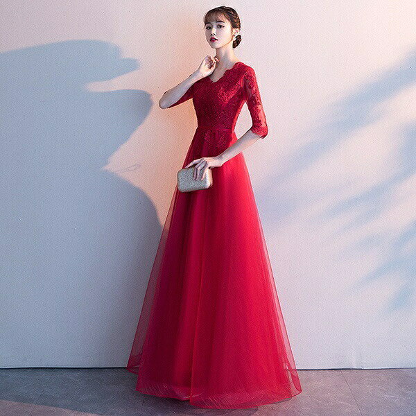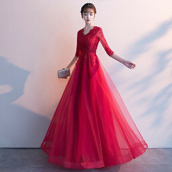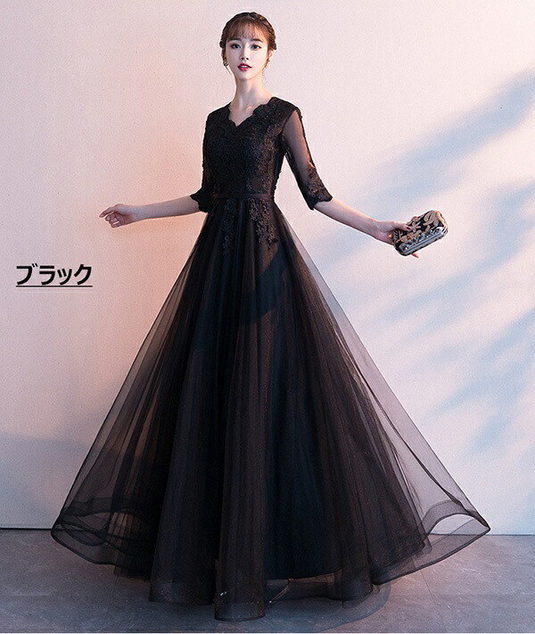 ★500円OFFクーポン配布中★ドレス 大人 ピアノ 発表会 演奏会用ドレス ロングドレス 母親 結婚式 演奏会 黒 袖付き Aラインドレス フォーマルドレス パーティ 他と被らない 20代 30代 40代 ブラック グレー ワインレッドda695s1s1j3