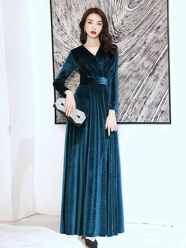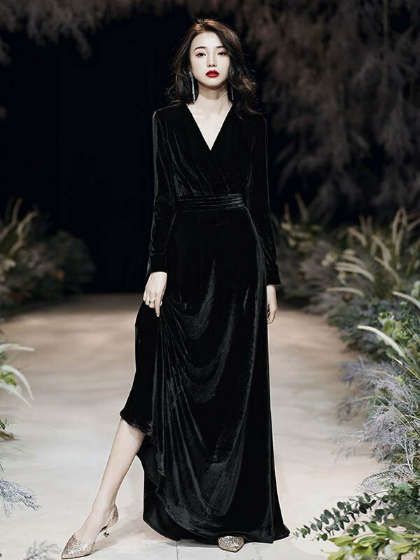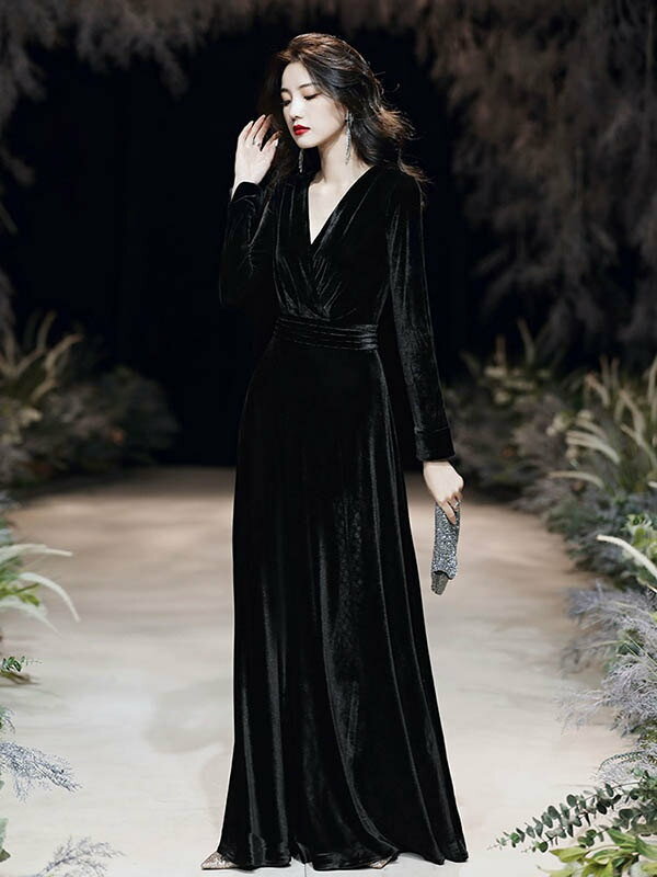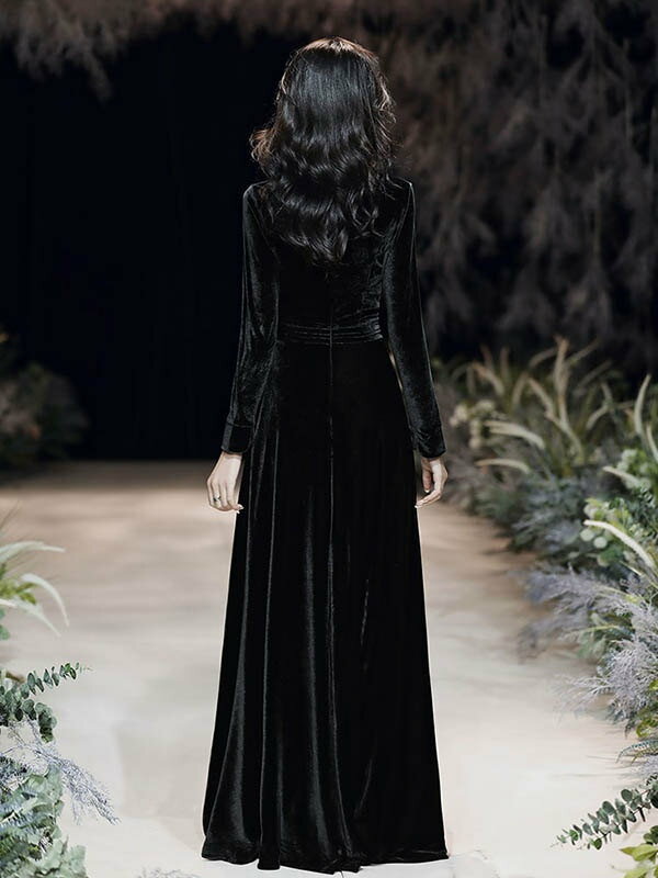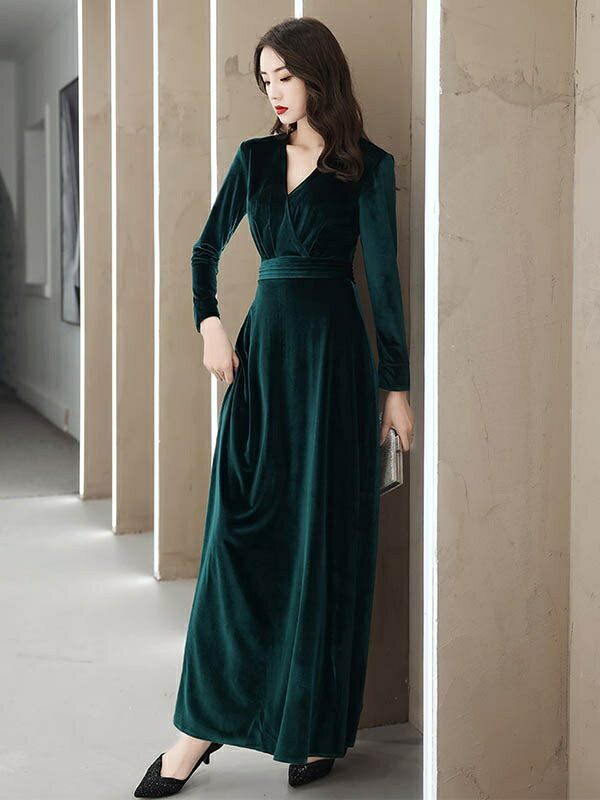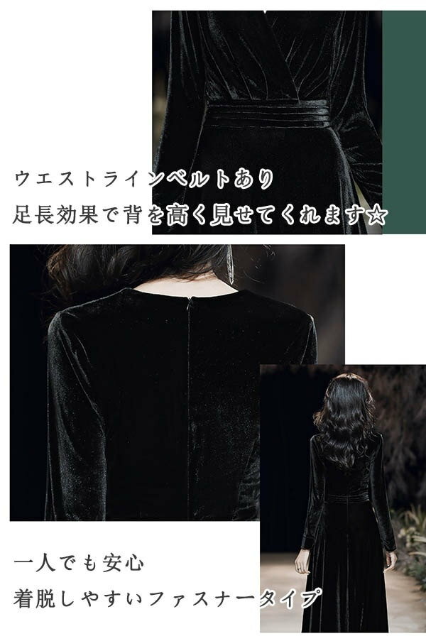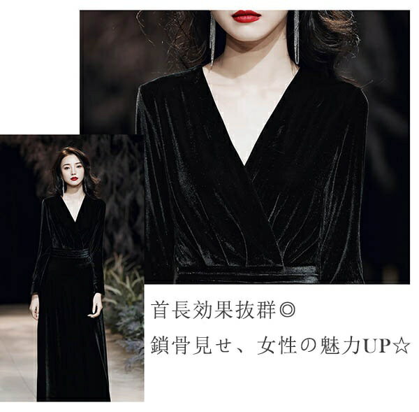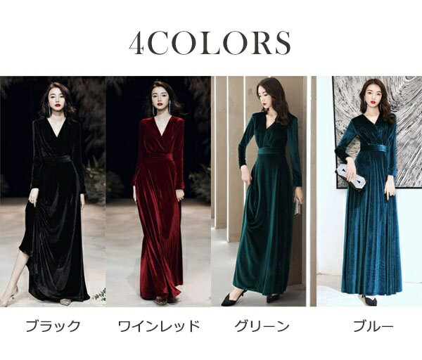 ロングドレス 演奏会 黒 袖付き ベルベット ドレス 長袖 大人 ピアノ 発表会 母親 結婚式 韓国 ロング 小さいサイズ XXS XS 大きいサイズ 4L 体型カバー 謝恩会 卒業式 花嫁 合唱団 オペラ コーラス ステージ ブラック ワインレッド ブルー グリーン 20代 30代 40代