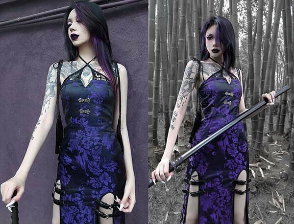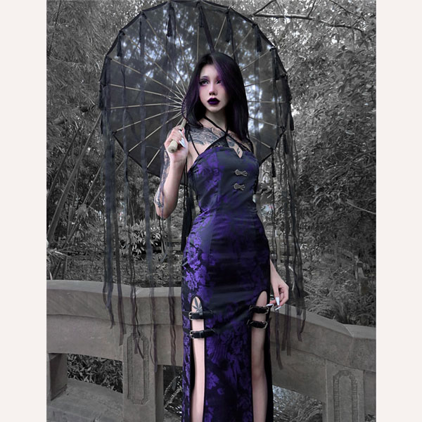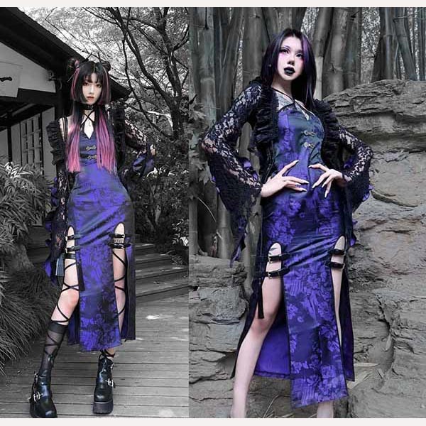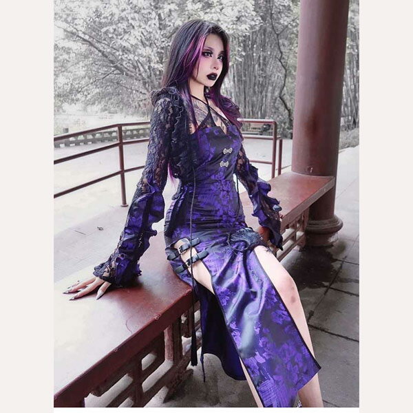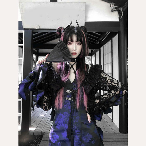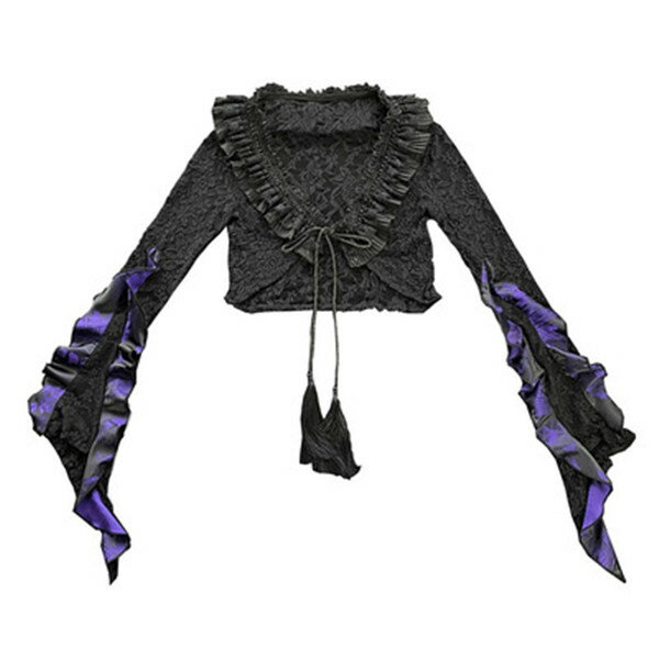 仮装舞踏会 女性用 ゴシック暗黒系 中国風 レース 長袖トップス ハロウィン 個性的 ドレス追加可 パープル コスチューム パーティー 文化祭 学園祭 イベント