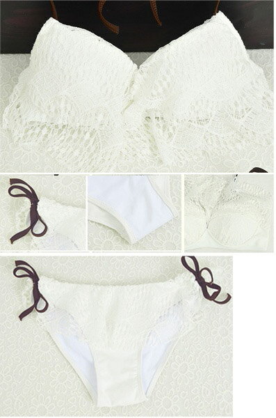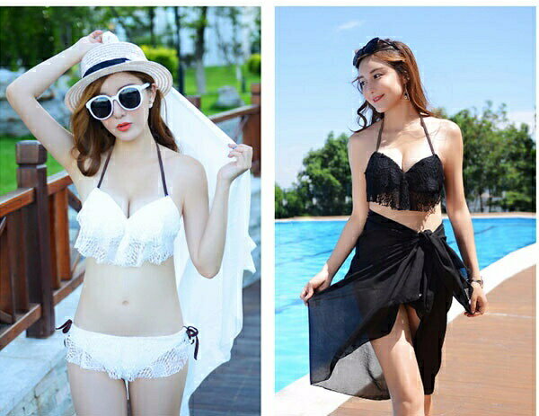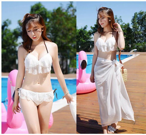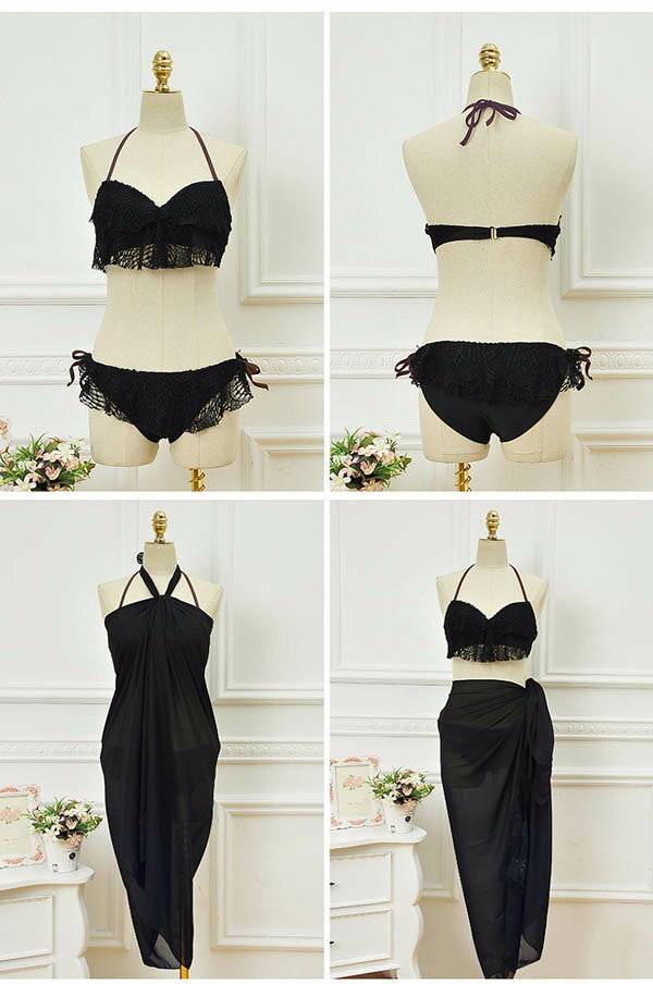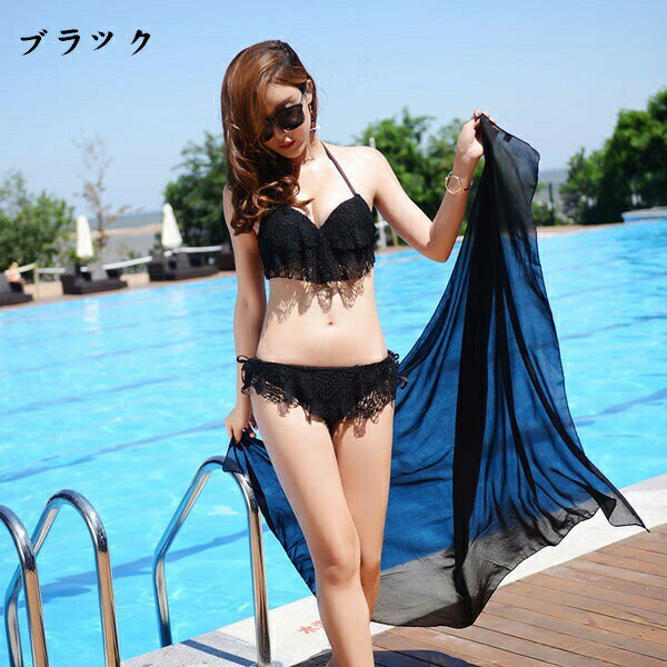 水着 バンドゥ レディース セクシー ビキニ ワイヤー入り レース 白 黒 フリル パレオ付き 3点セット 3角ビキニ 個性 上下セット 盛れる 小胸もピッタリ 着やせ ビーチ 韓国風
